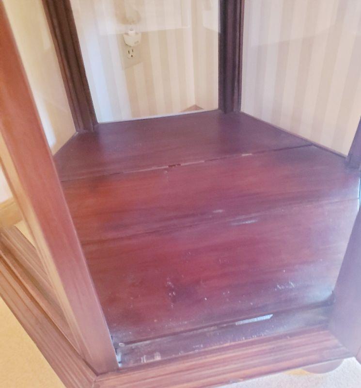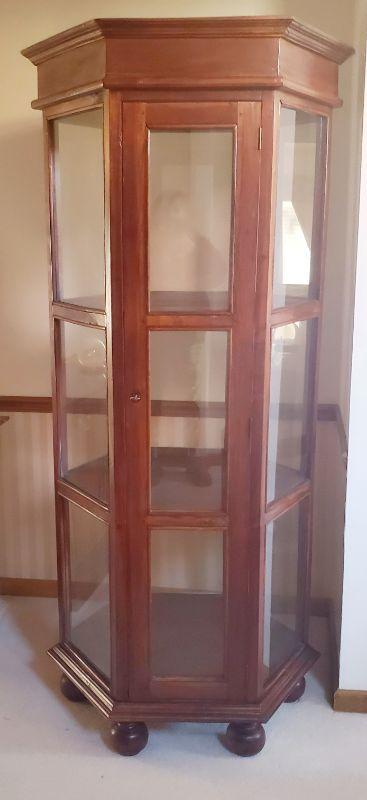 This beautiful cabinet is such a fantastic piece! Non-lighted HEXAGON SHAPE! THIS IS A MUST HAVE! KEY INCLUDED TO LOCK