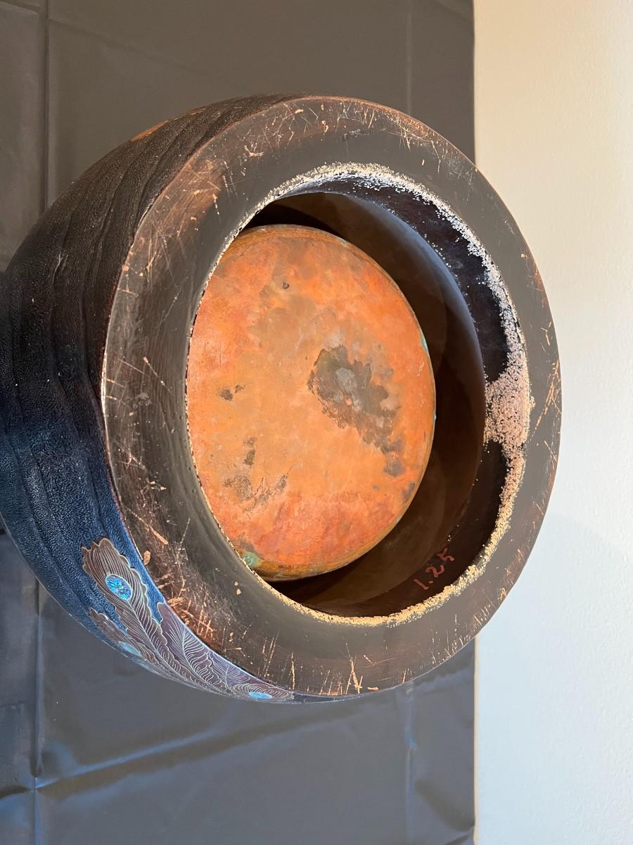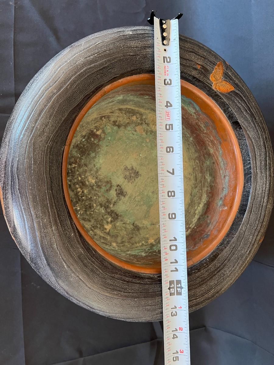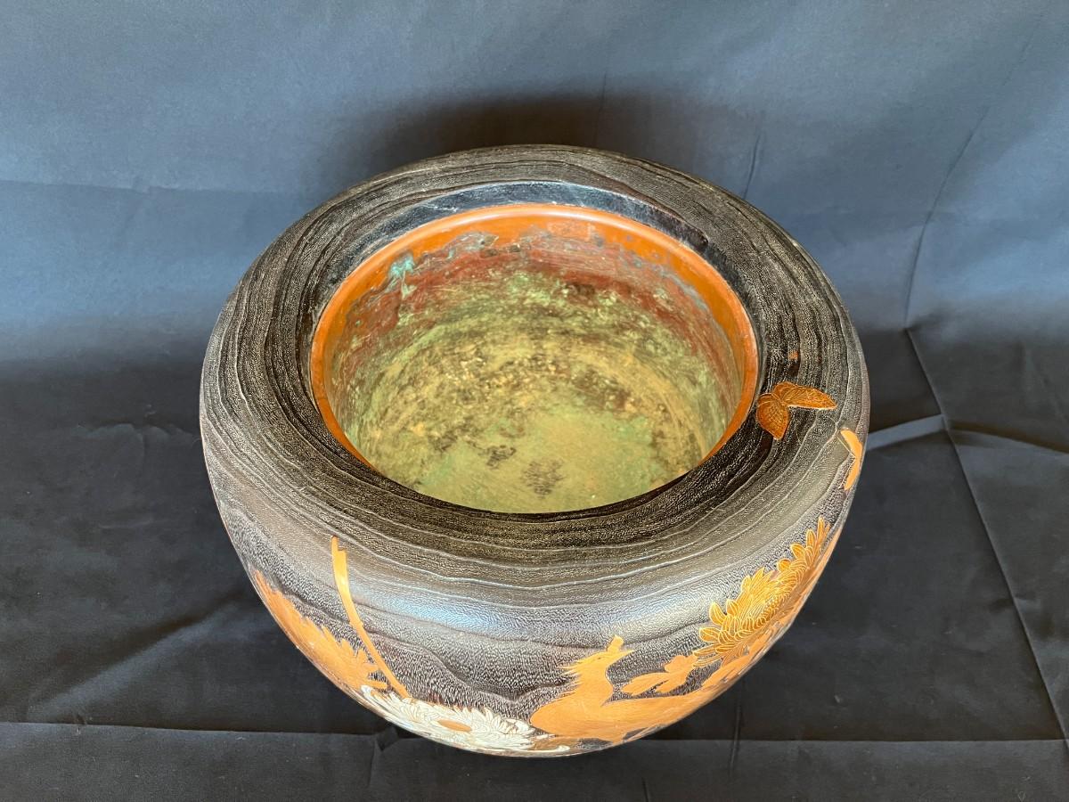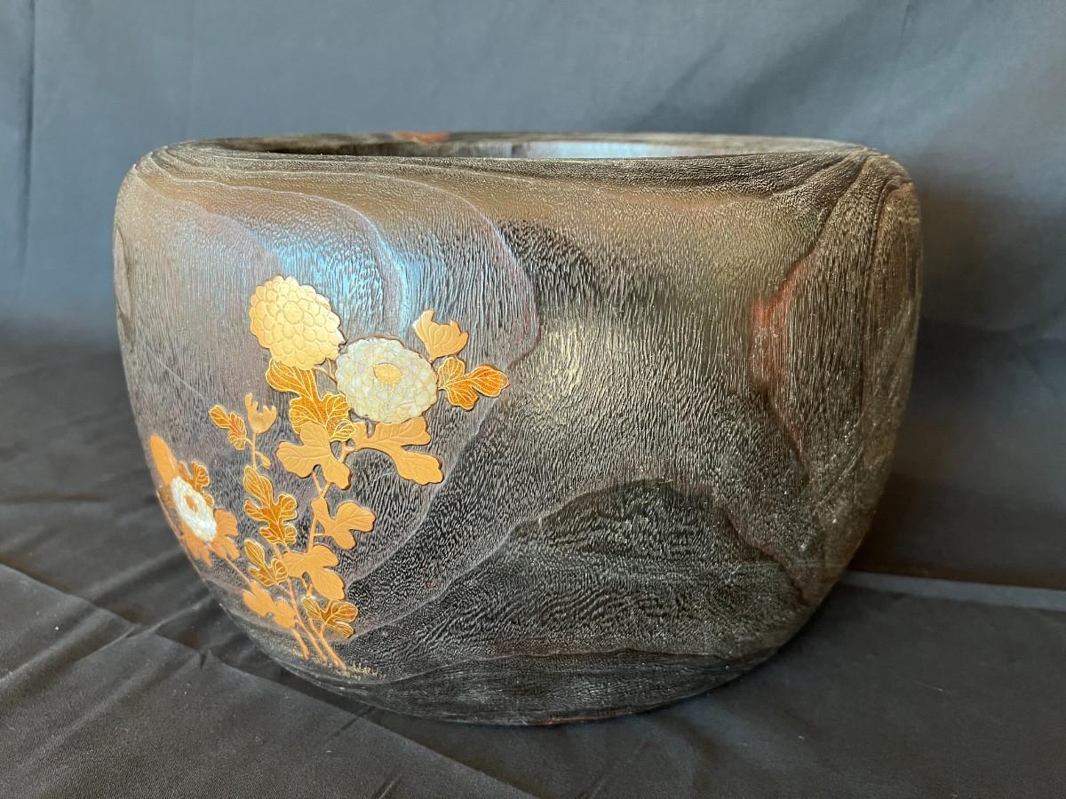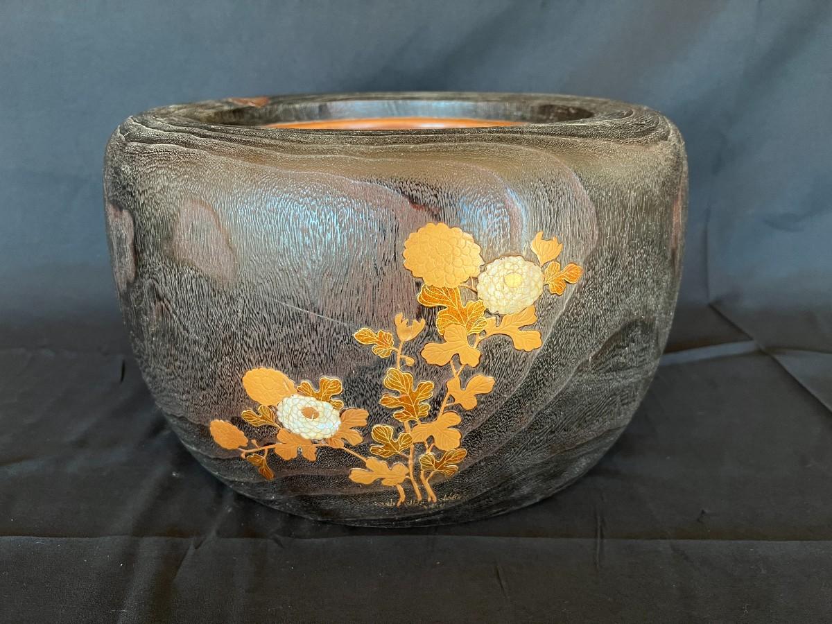 Beautiful Antique Kiri Wood Hibachi with Makie and Copper Metal Insert