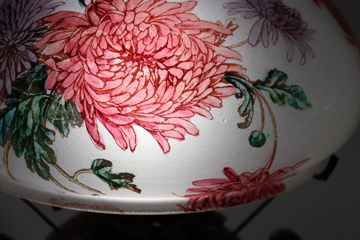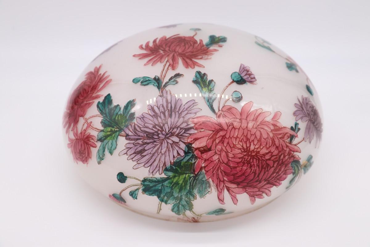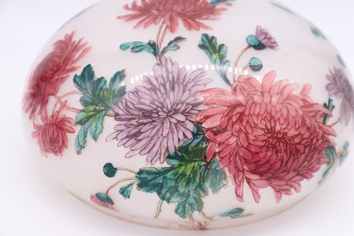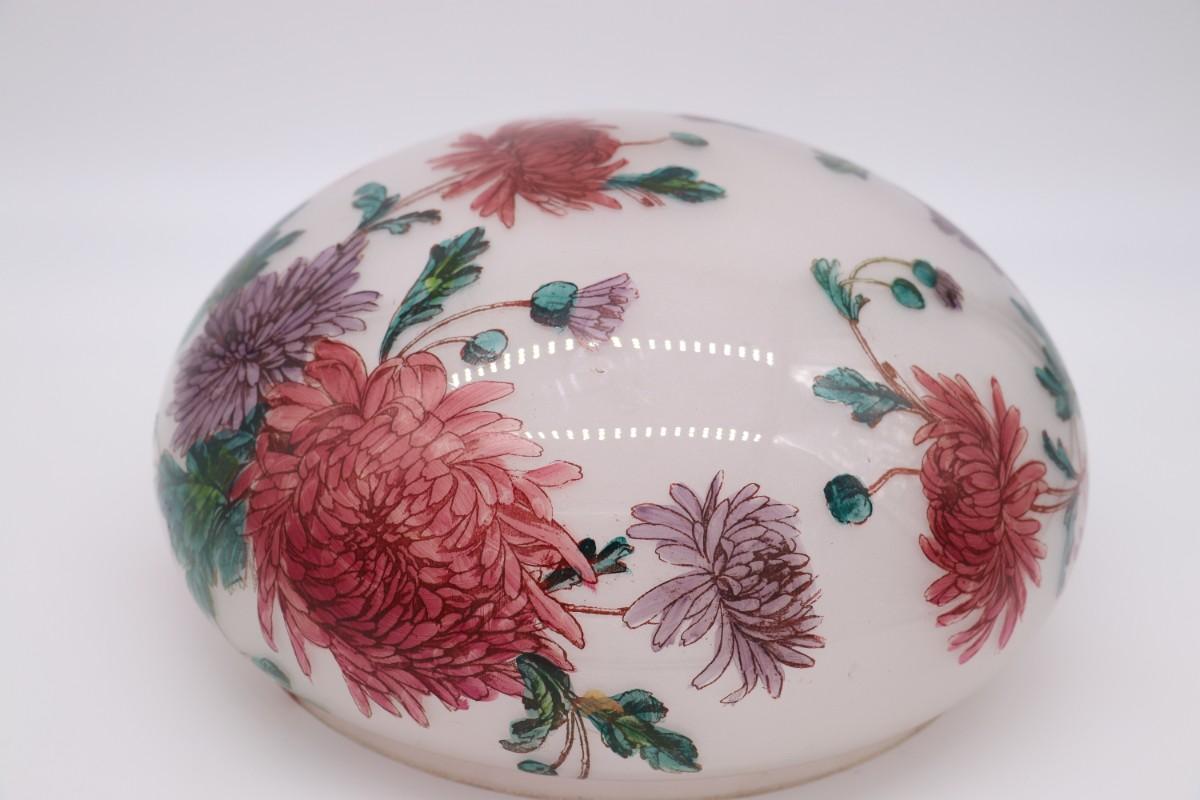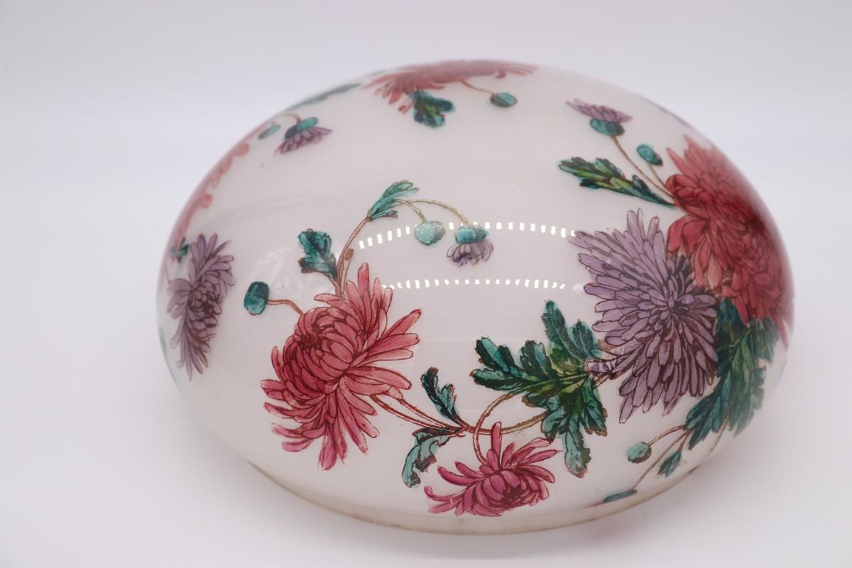Beautiful Antique Painted Floral White Glass Domed Lamp Shade