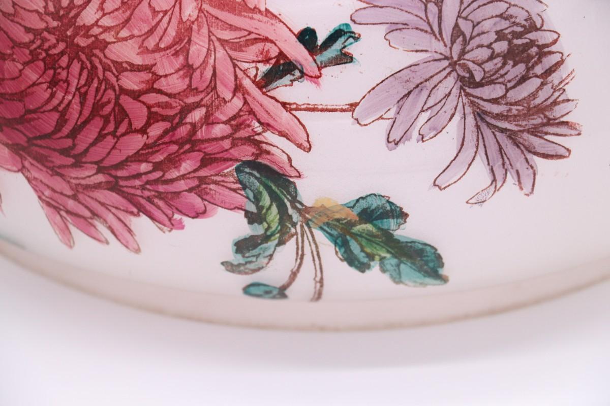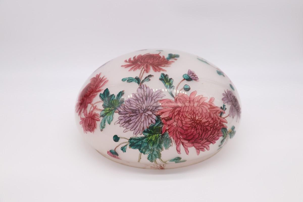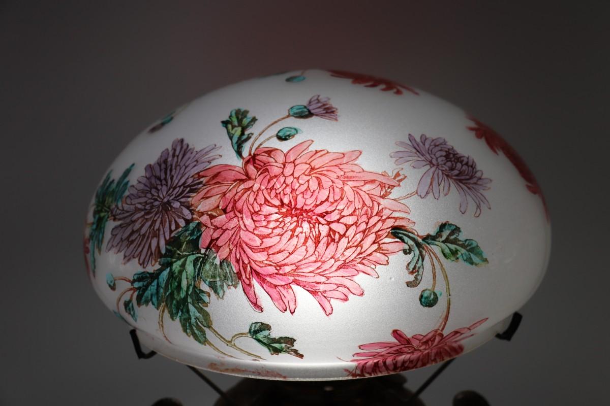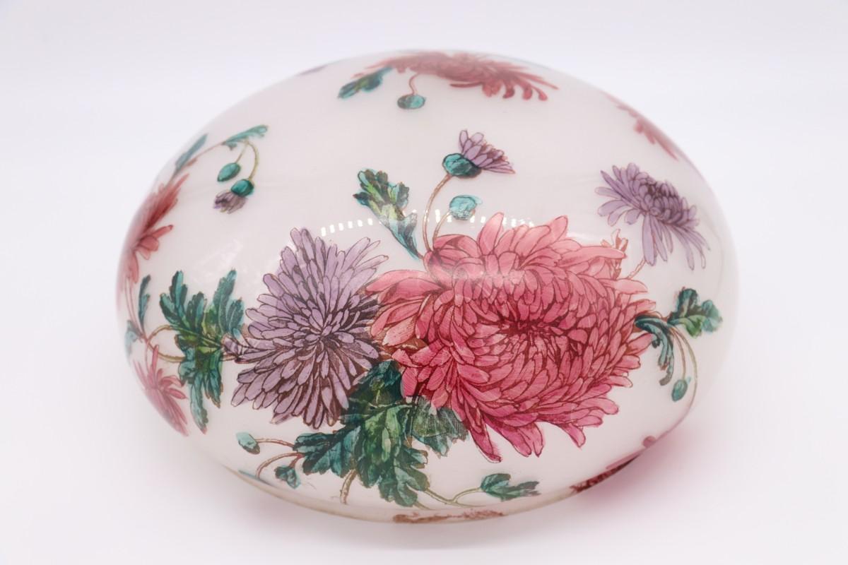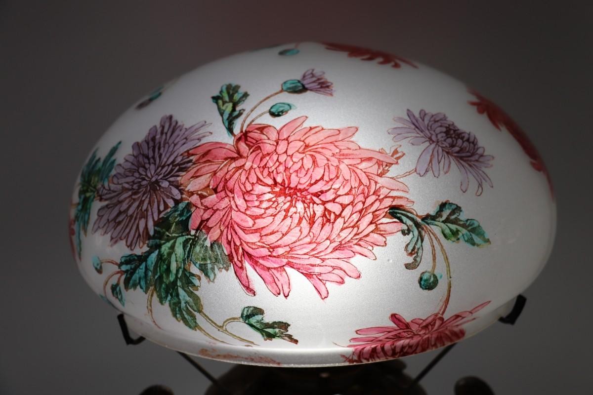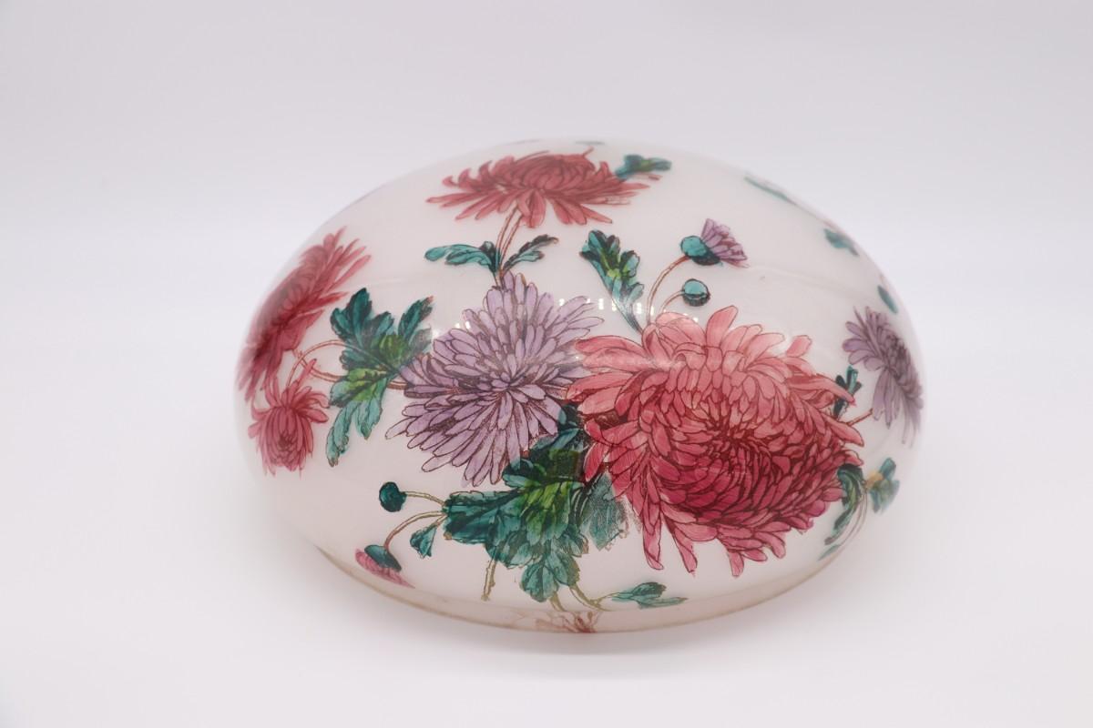Beautiful Antique Painted Floral White Glass Domed Lamp Shade