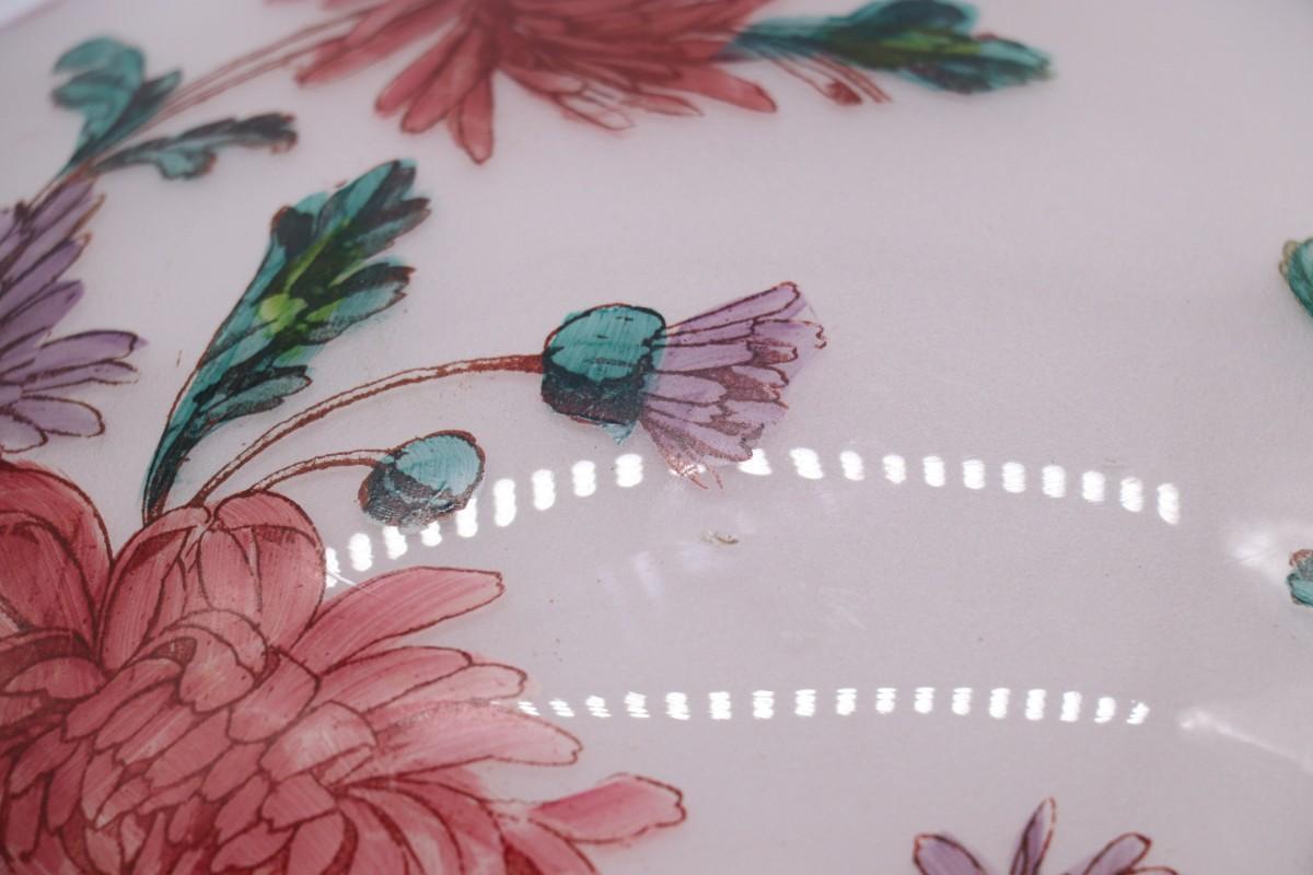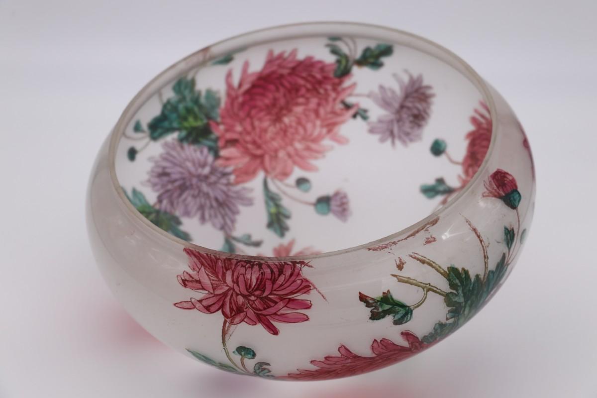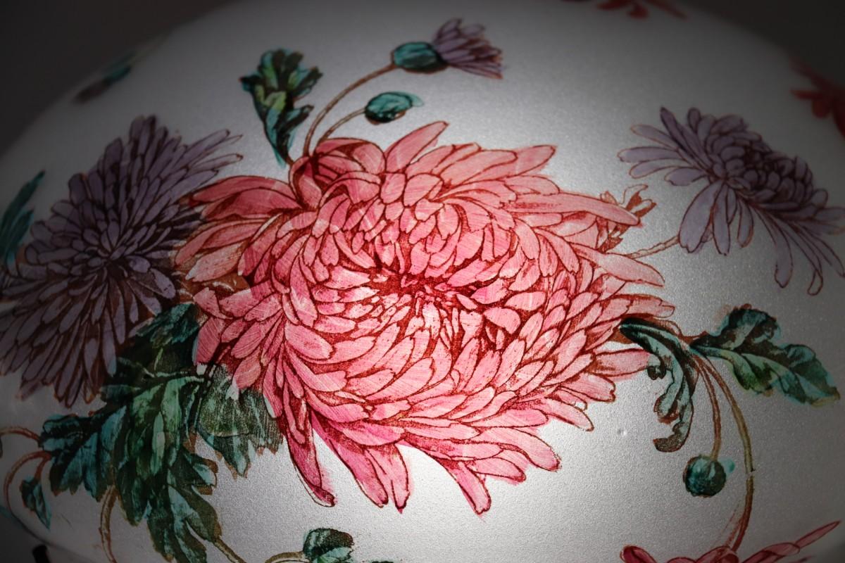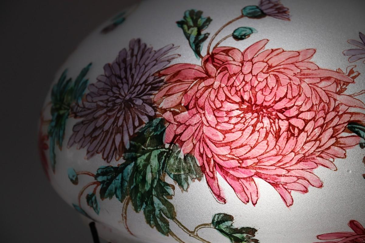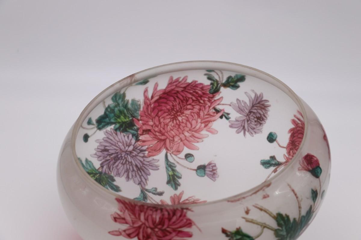 Beautiful Antique Painted Floral White Glass Domed Lamp Shade