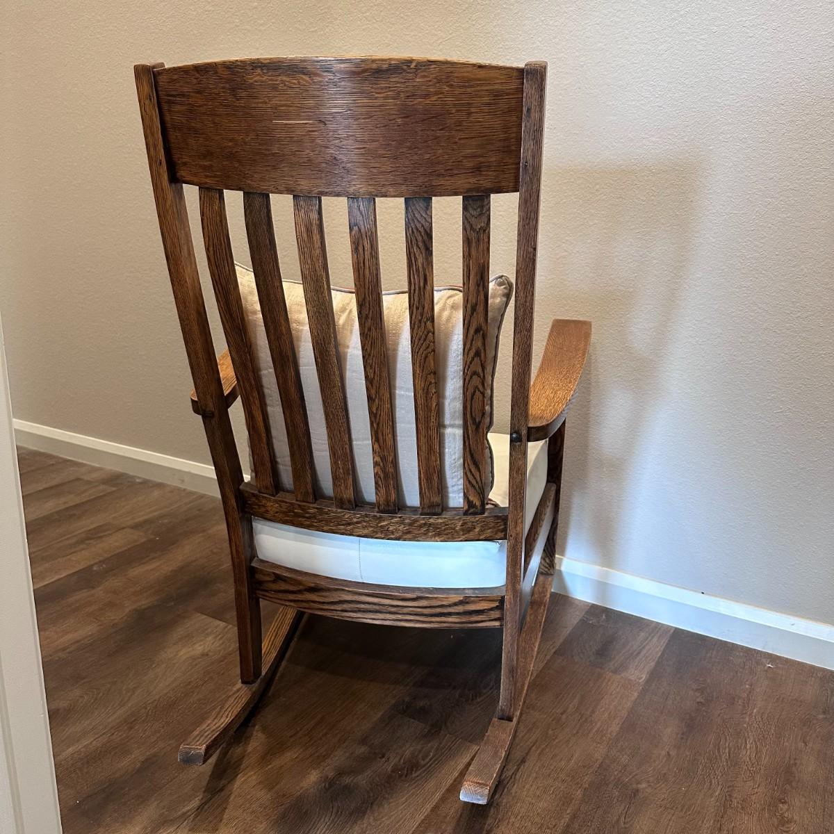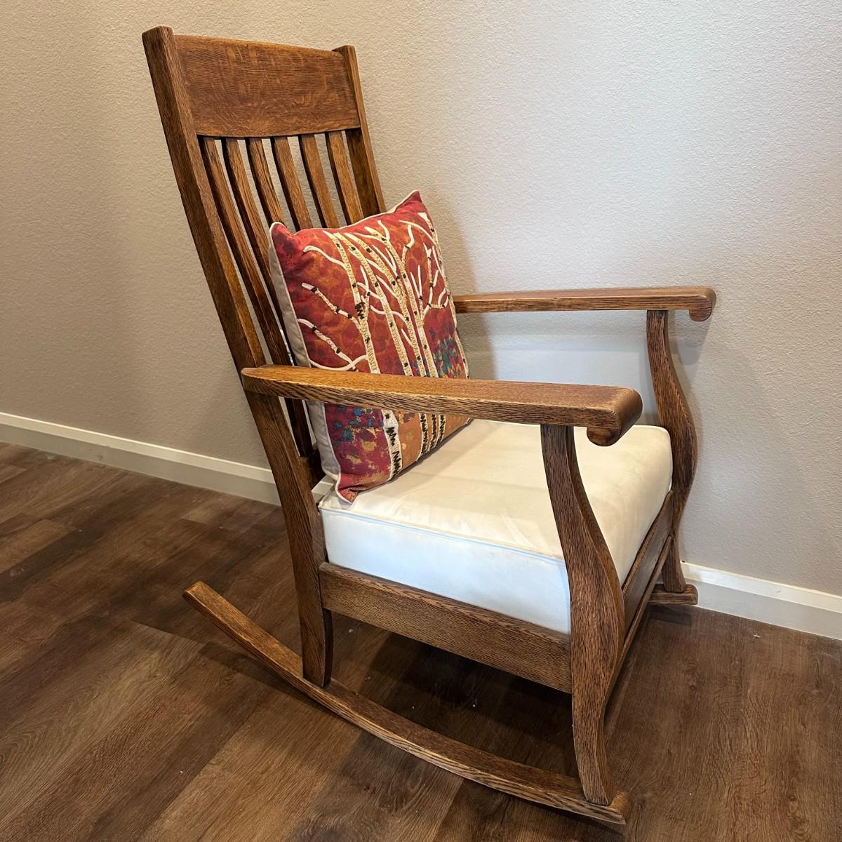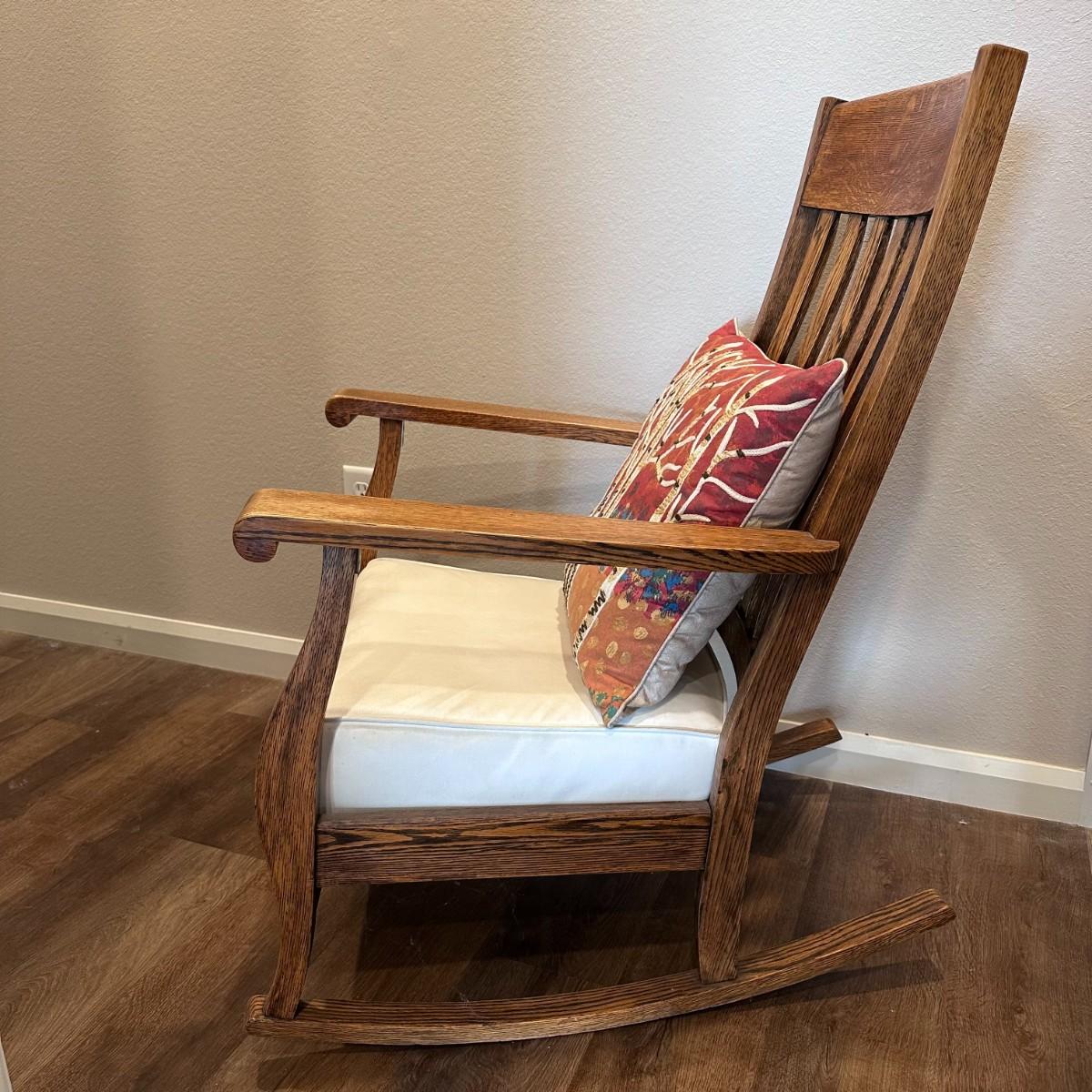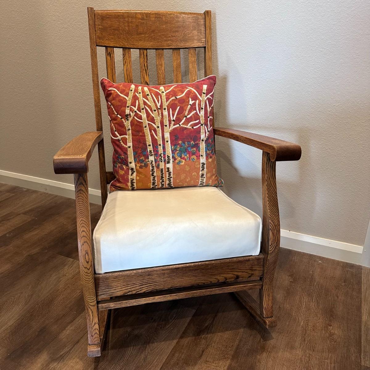 Beautiful Antique Rocking Chair with Leather Cushion and cloth pillow.