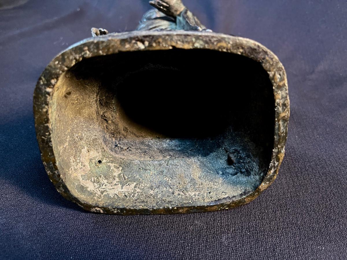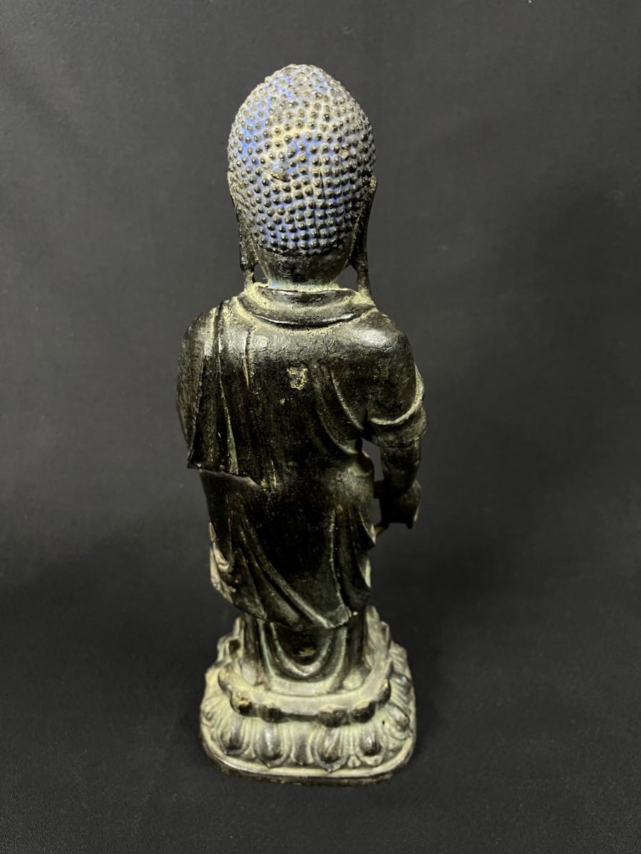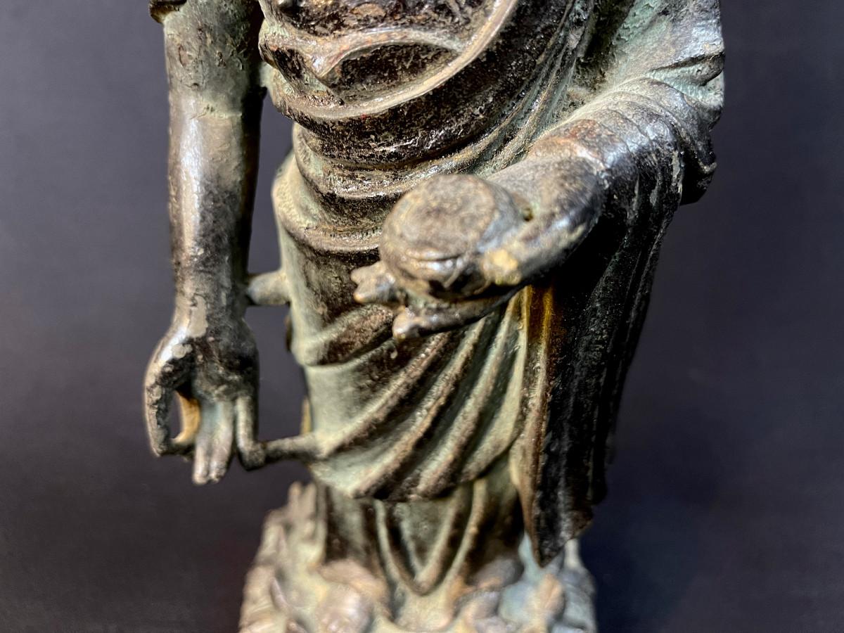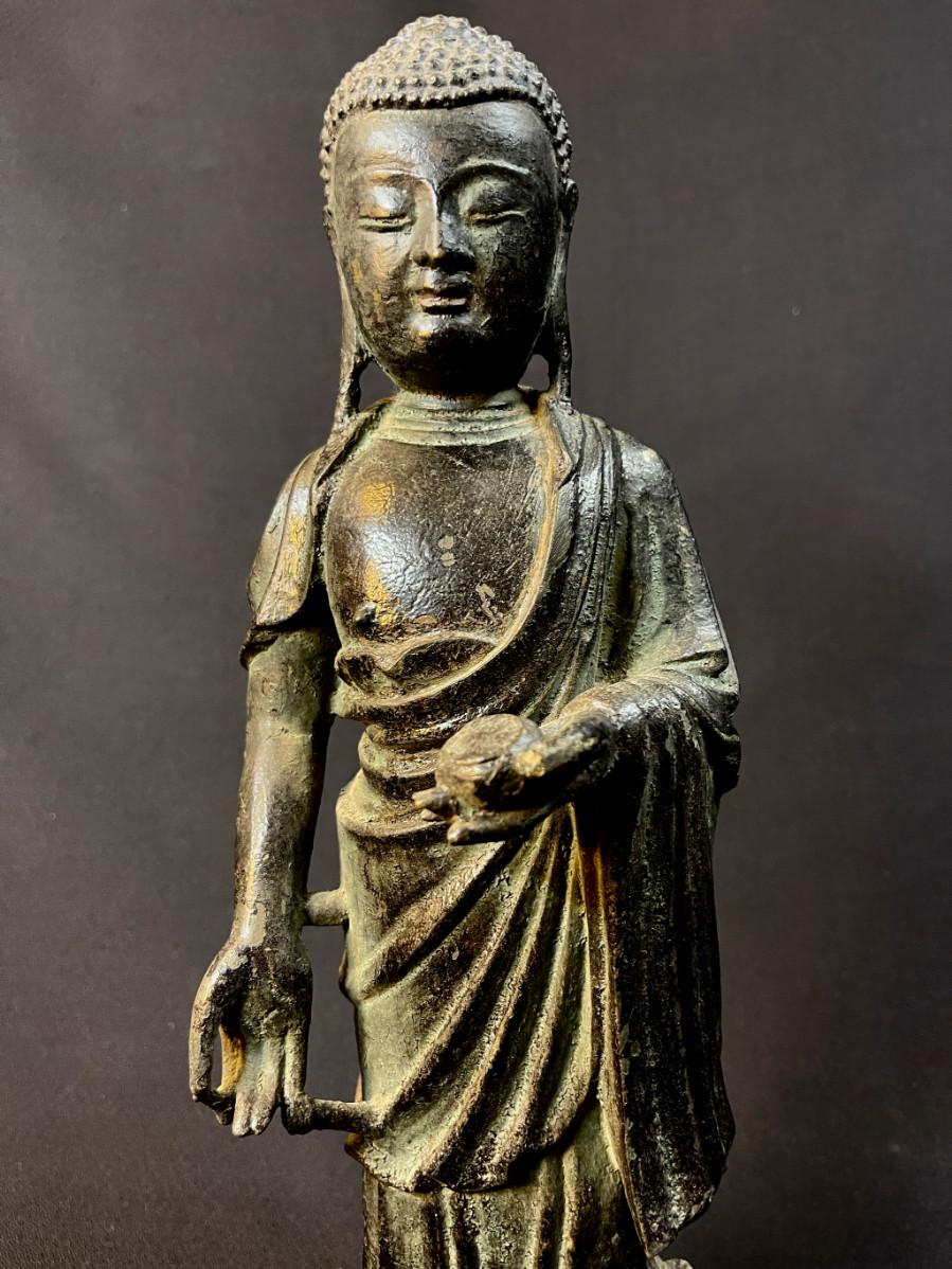 Beautiful Antique Standing Bronze Temple Buddha holding an offering