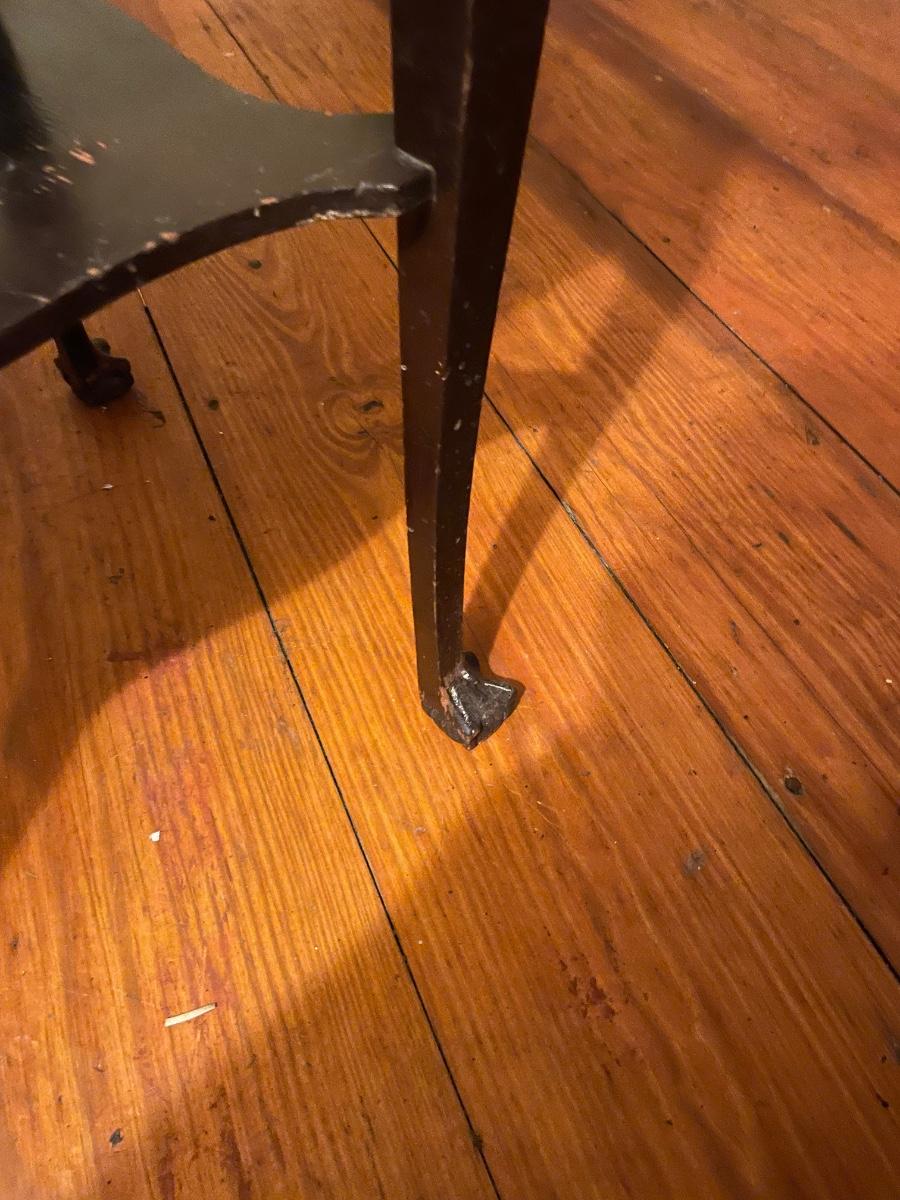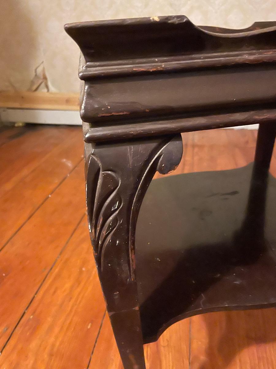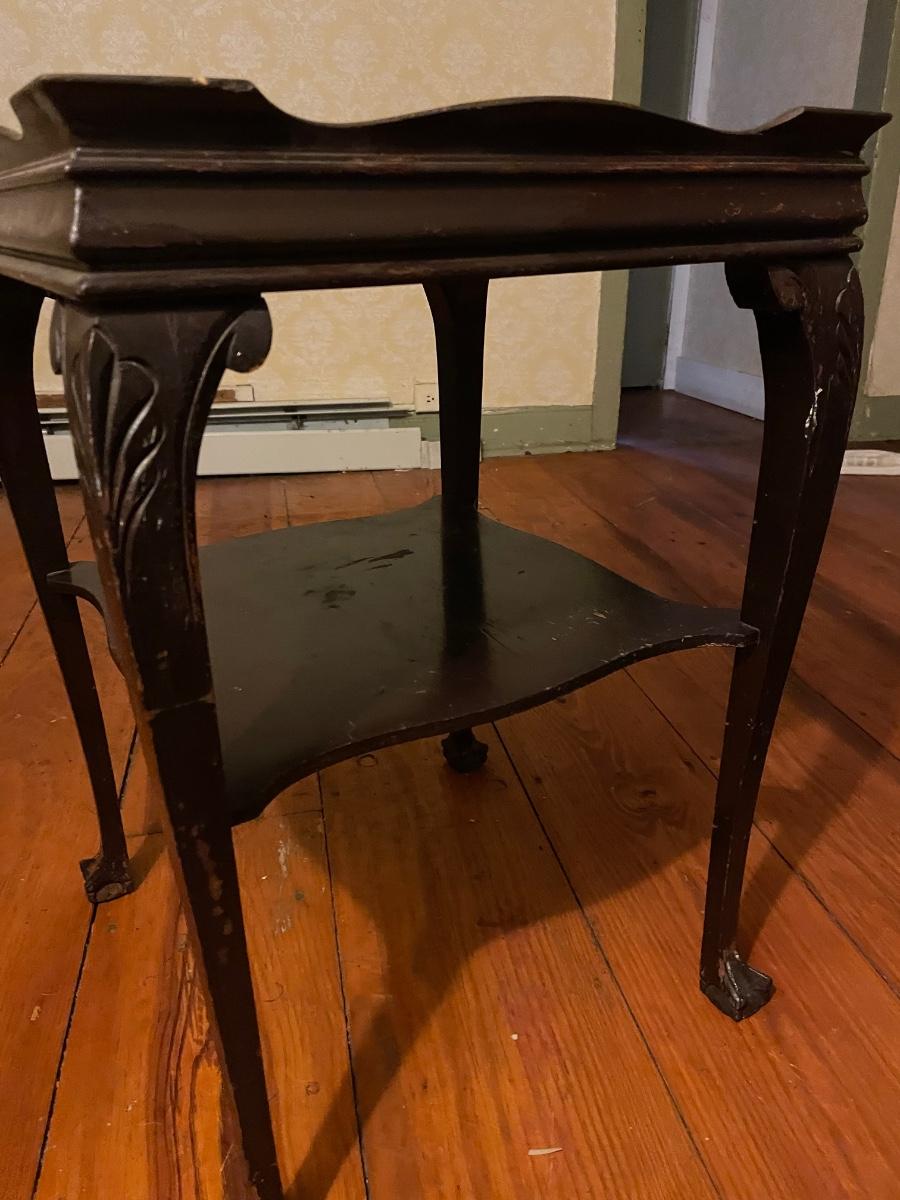 Antique table with lion feet. Has beautiful carving on the sides. Has some wear and tear.