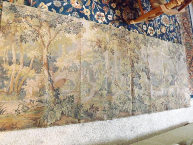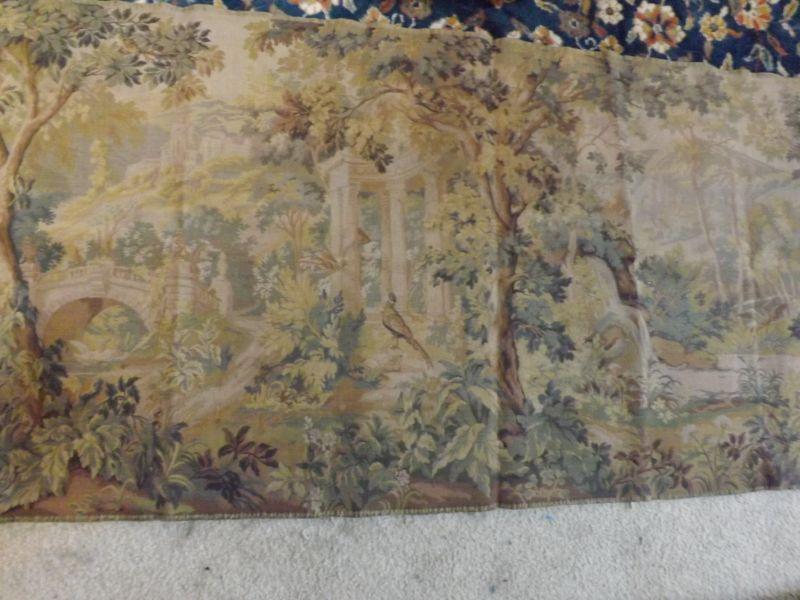 Beautiful woven tapestry, bound on one side, raw edges on the others. 29.5x76