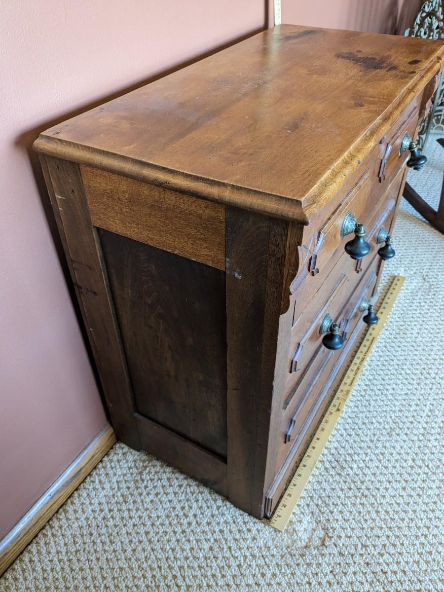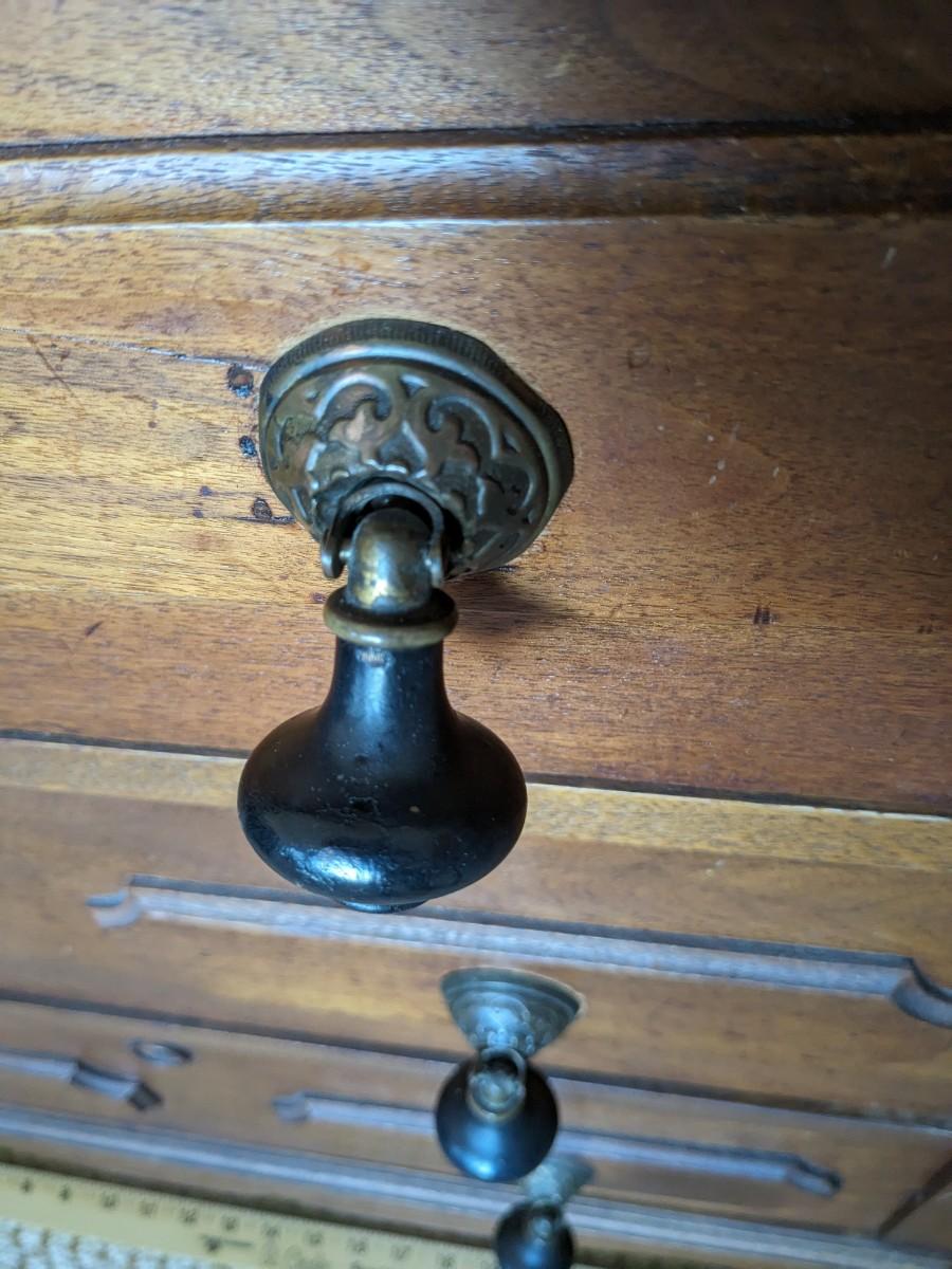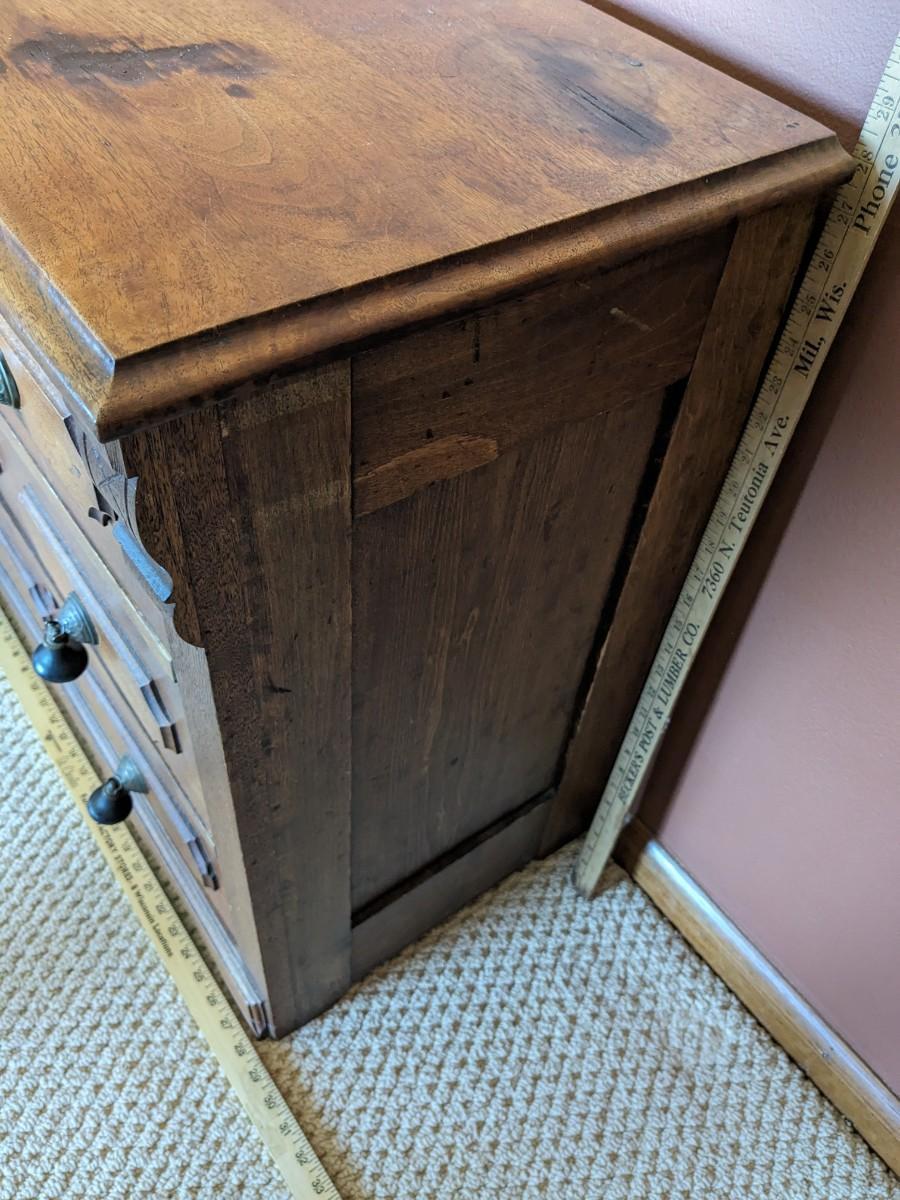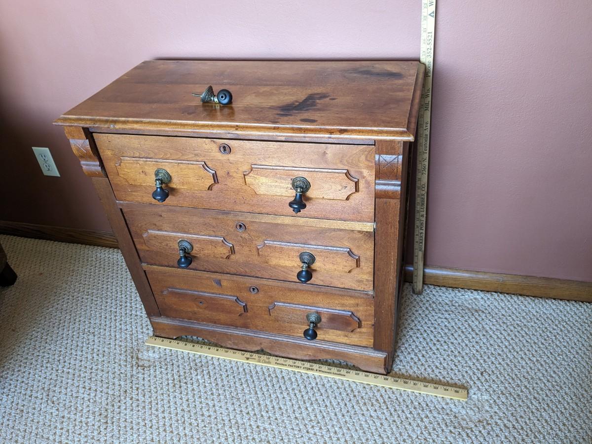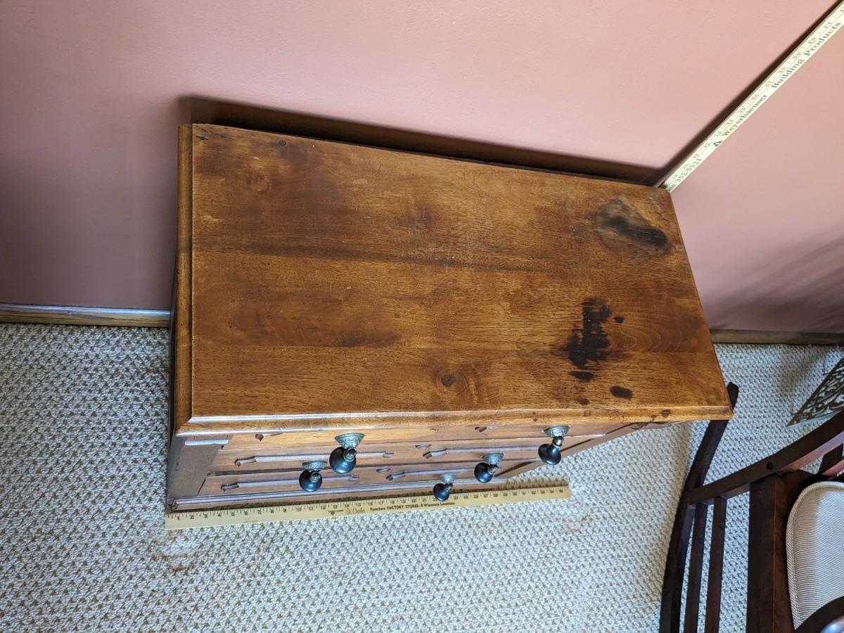 Some damage to the top and handle needs to be put back on. Wonderful piece of furniture