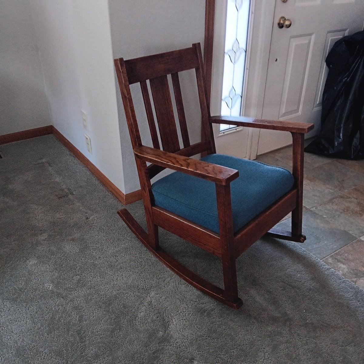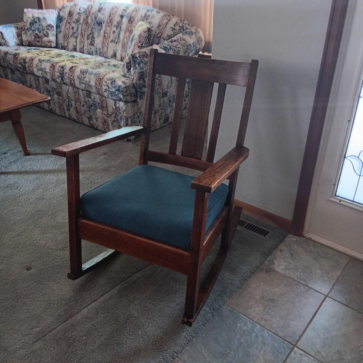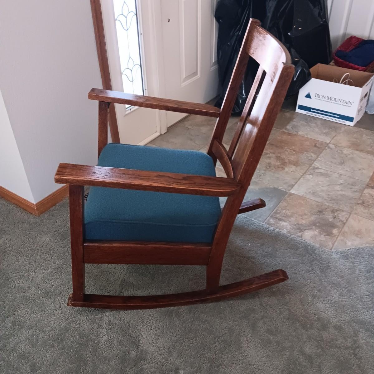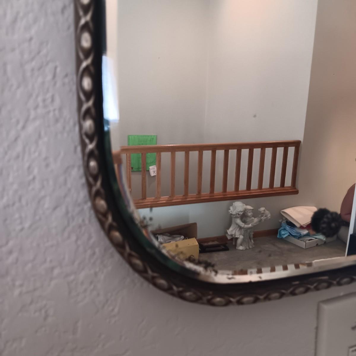 BEAUTIFUL ANTIQUE WALL MIRROR AND AN ANTIQUE ROCKING CHAIR