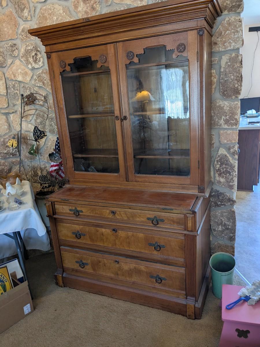 Beautiful Antique Walnut Cabinet/Secretary