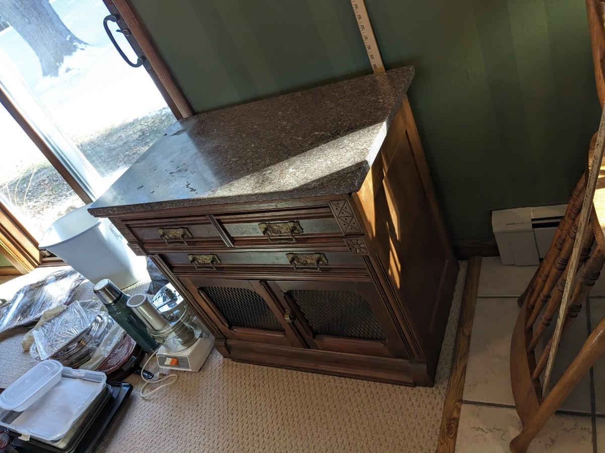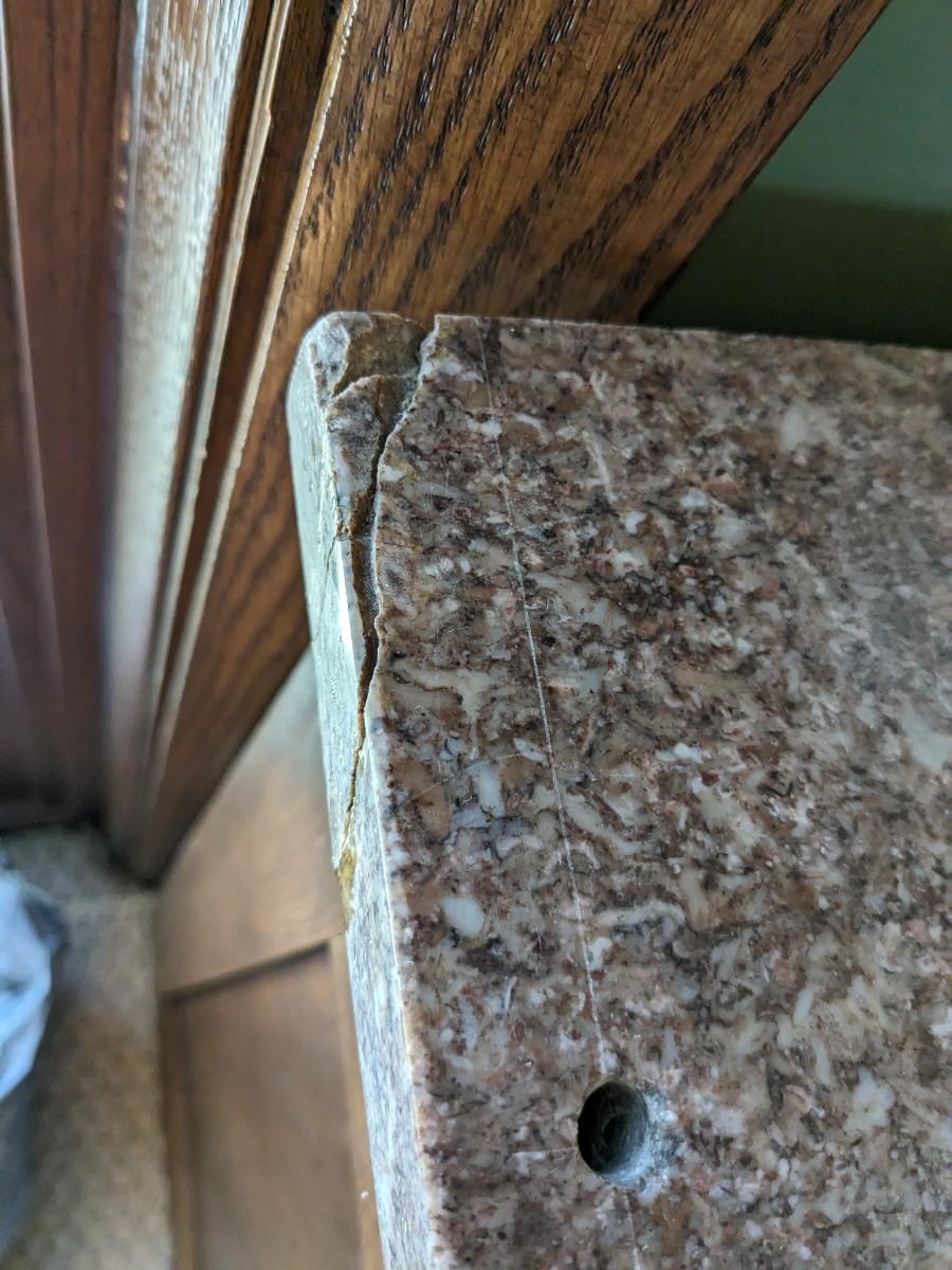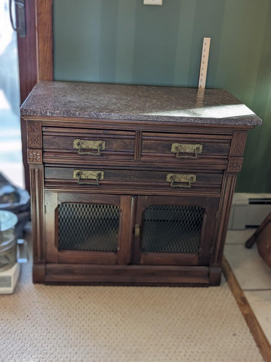 Very good condition, marble is gorgeous however has a crack in back corner.