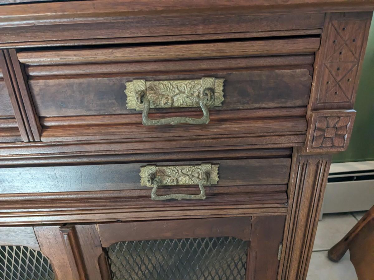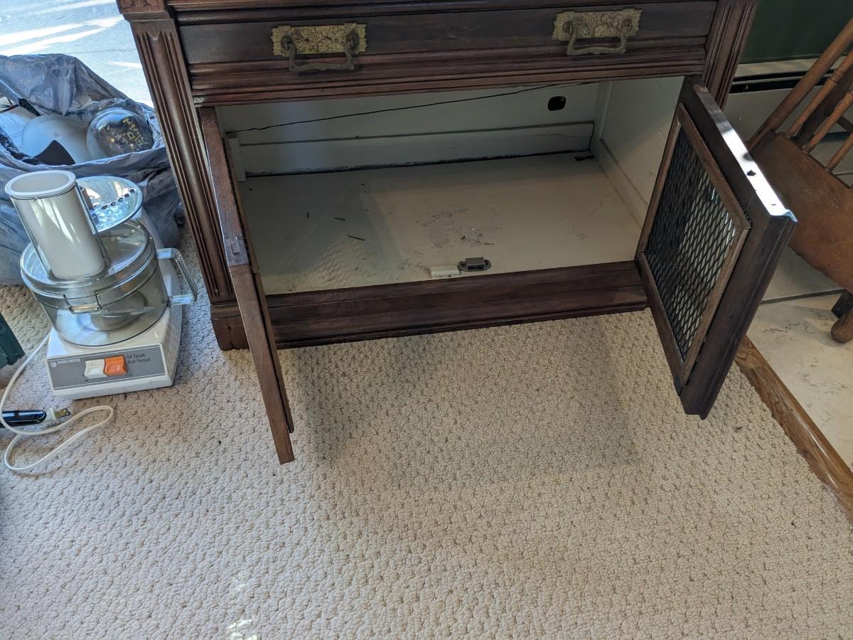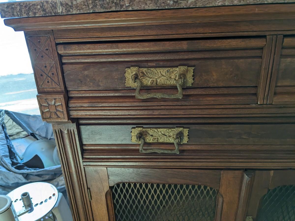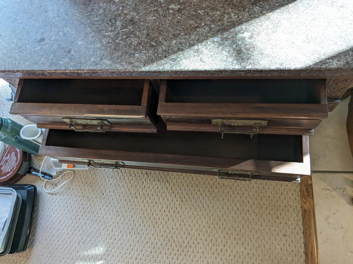 Very good condition, marble is gorgeous however has a crack in back corner.