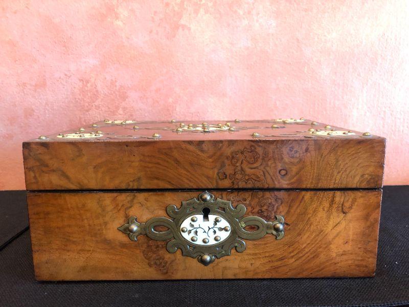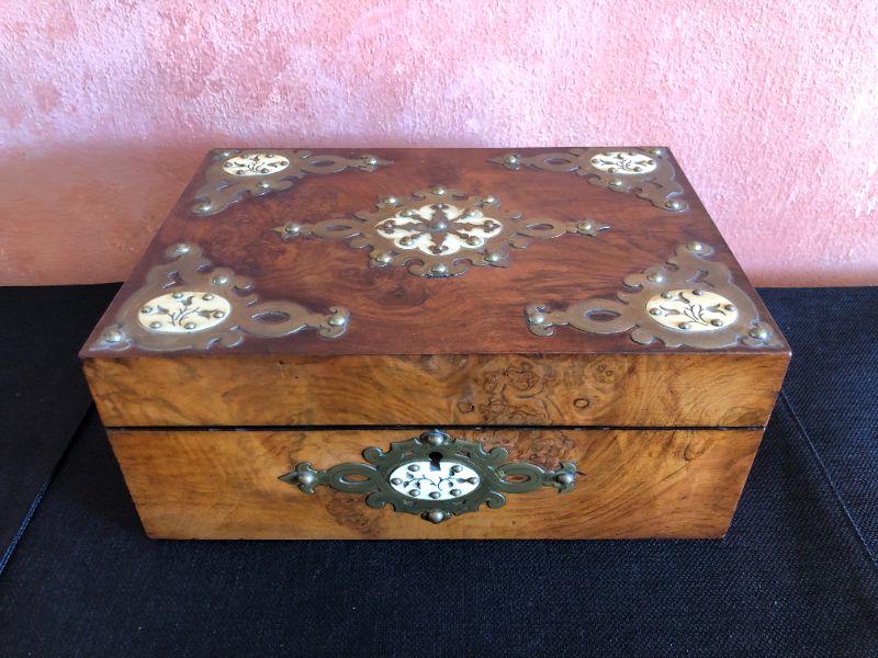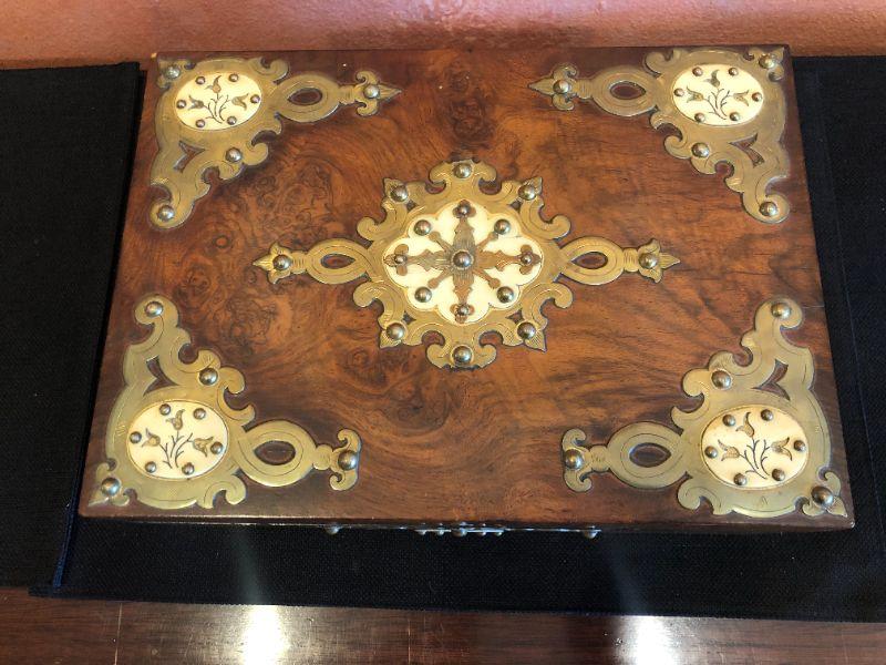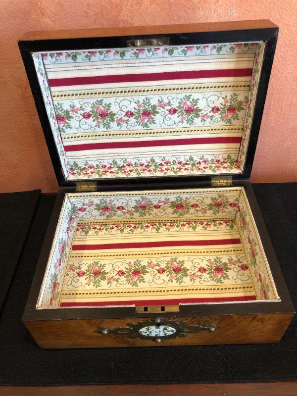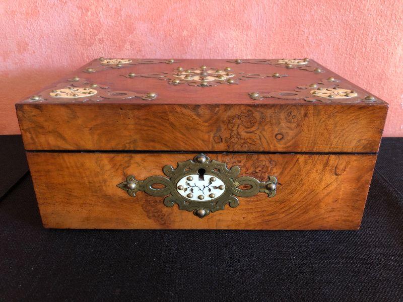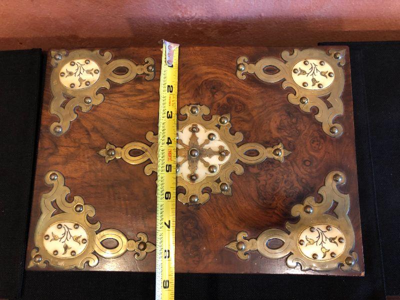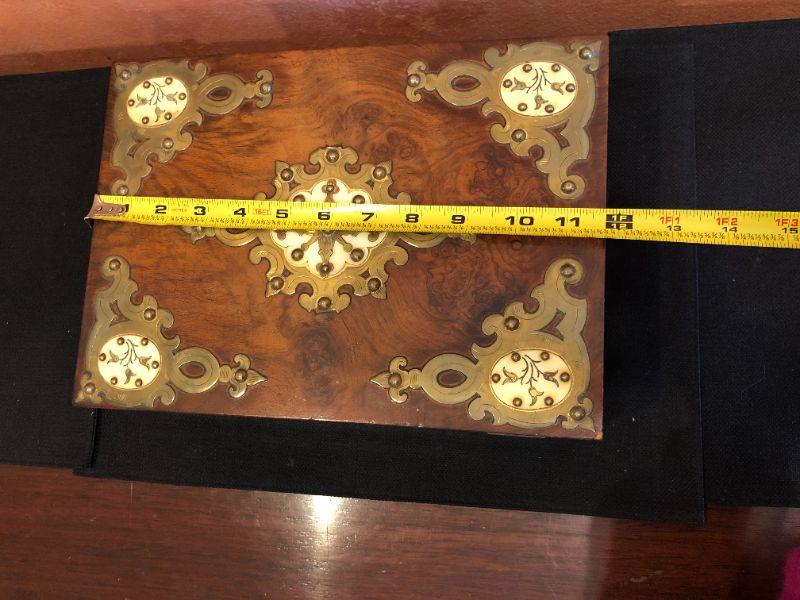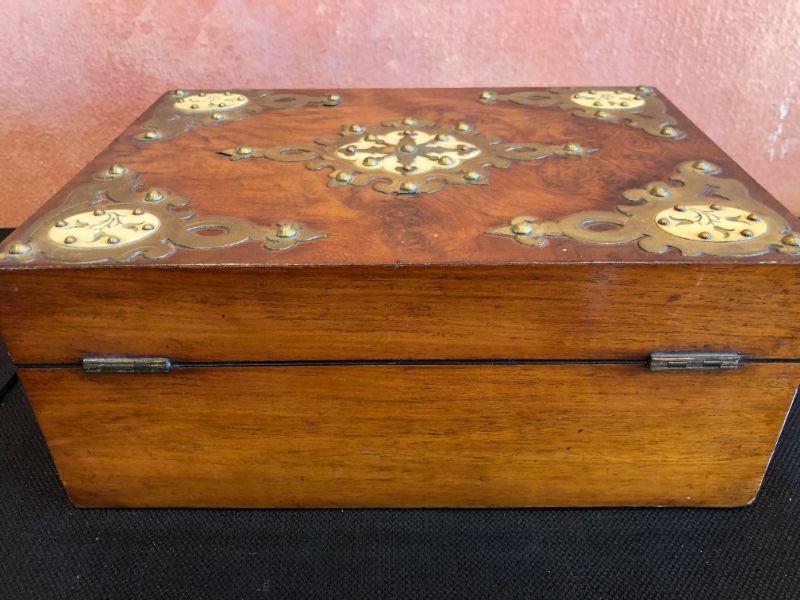 Beautiful Antique Wood and Metal Inlay Keepsake Box