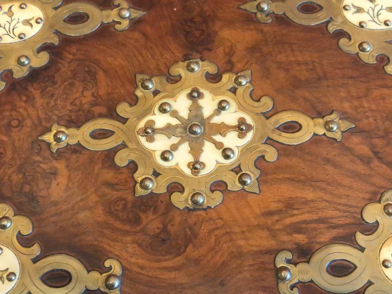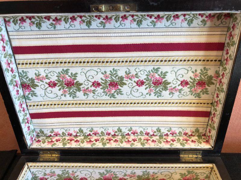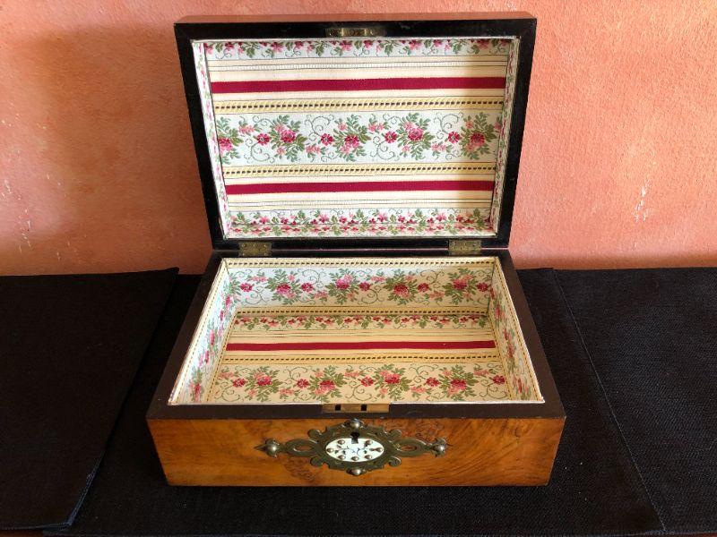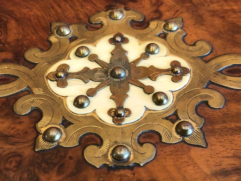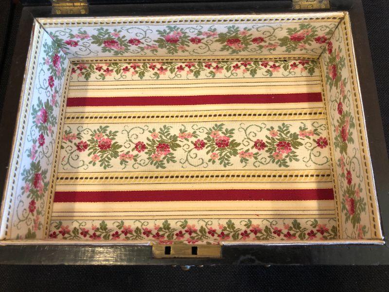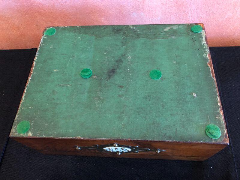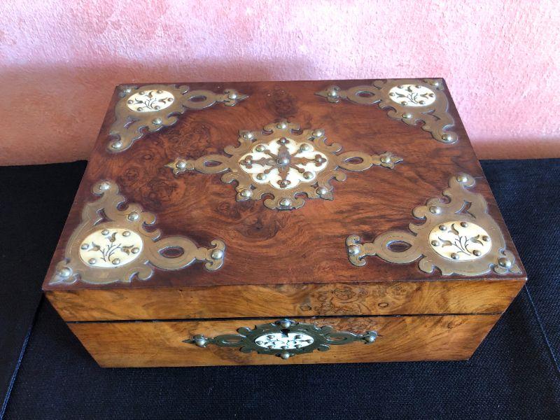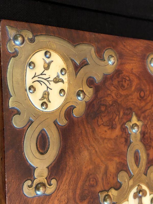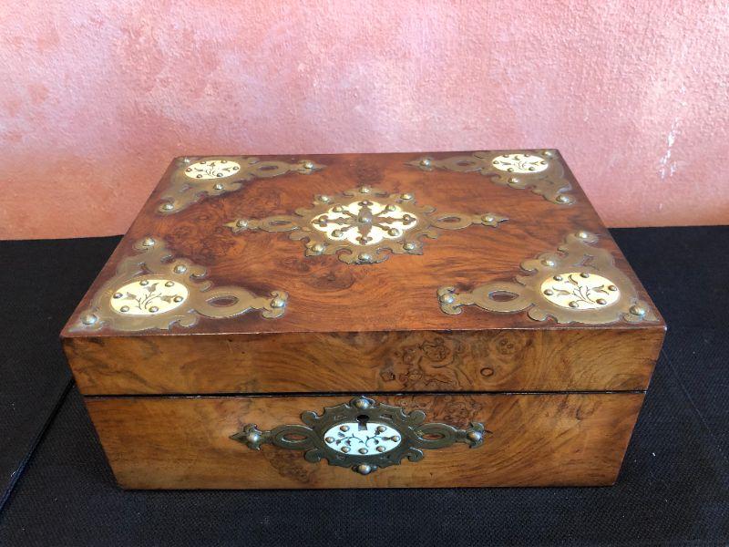 Beautiful Antique Wood and Metal Inlay Keepsake Box
