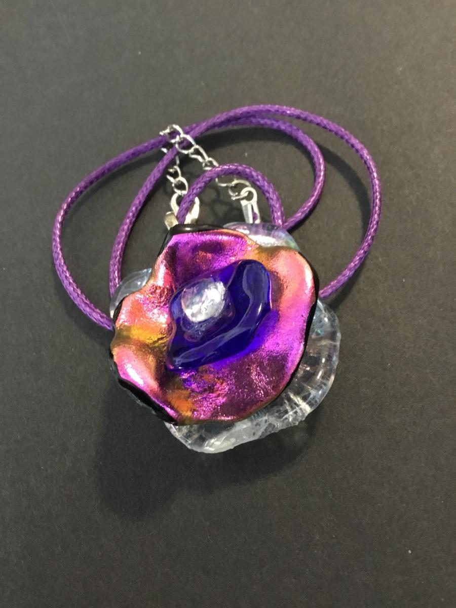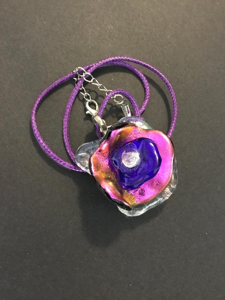 Beautiful art glass, flower pendant necklace