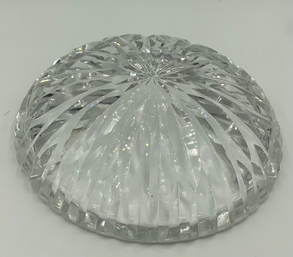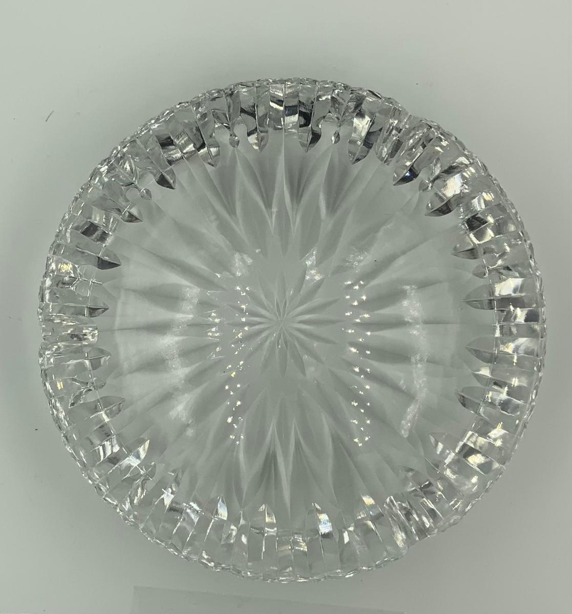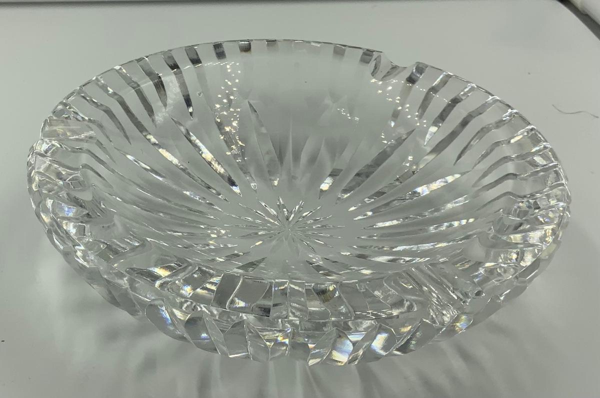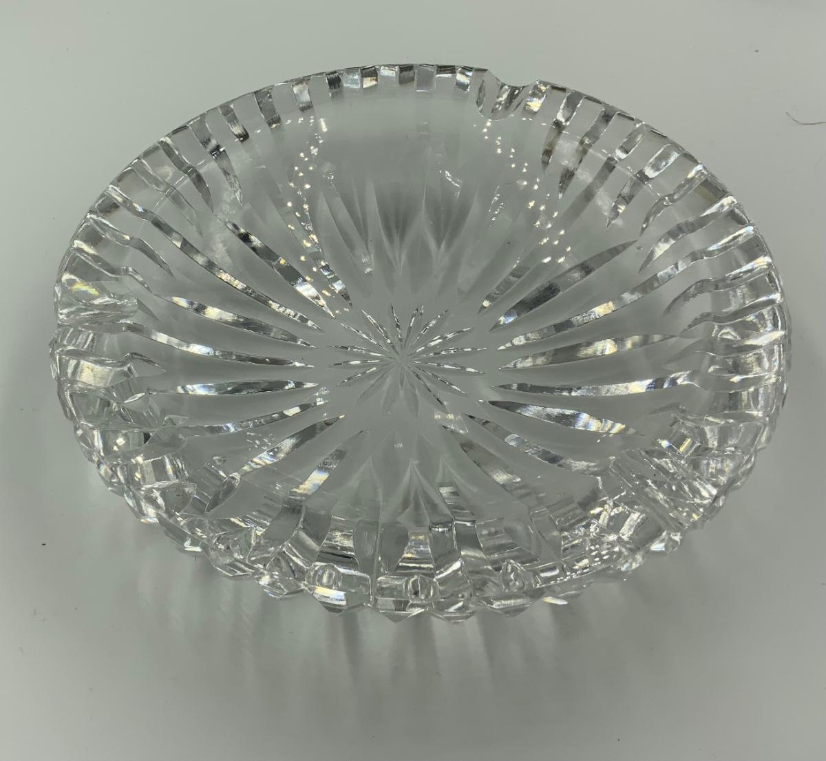 Vintage glass ashtray with cigarette holder grooves. This piece measures 2”H x 7”W and is very heavy! In perfect condition!