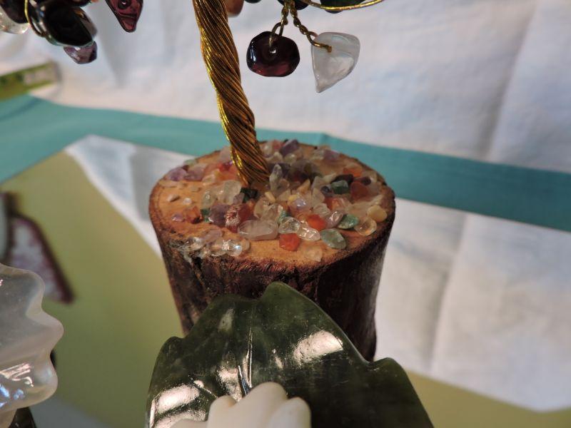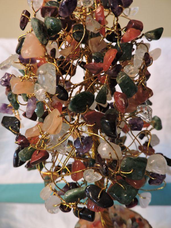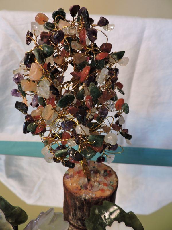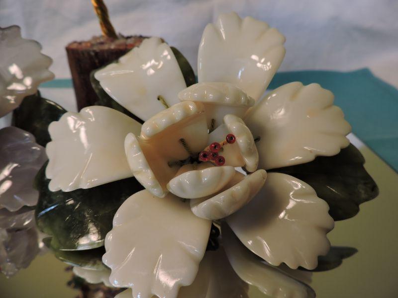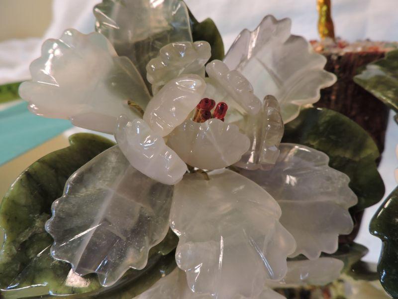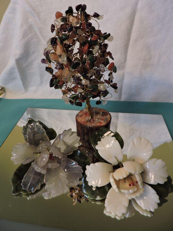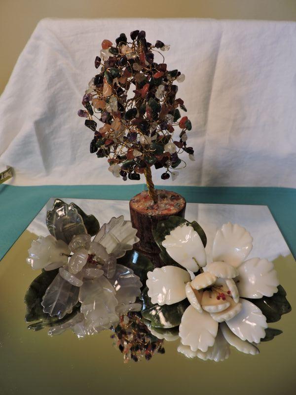 Beautiful Asian Decor - Gemstone Bonsai Tree and Carved Stone Lotus Flowers