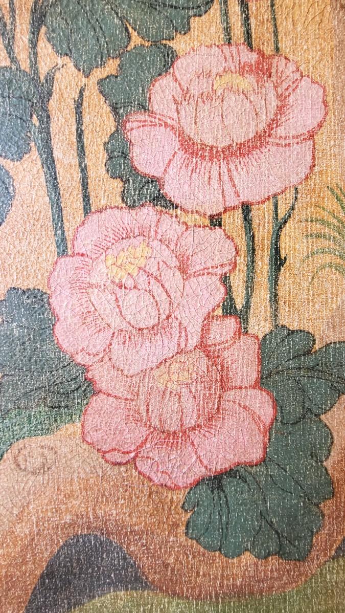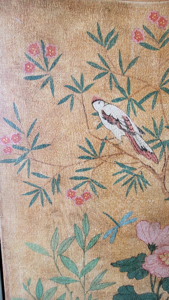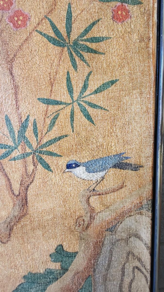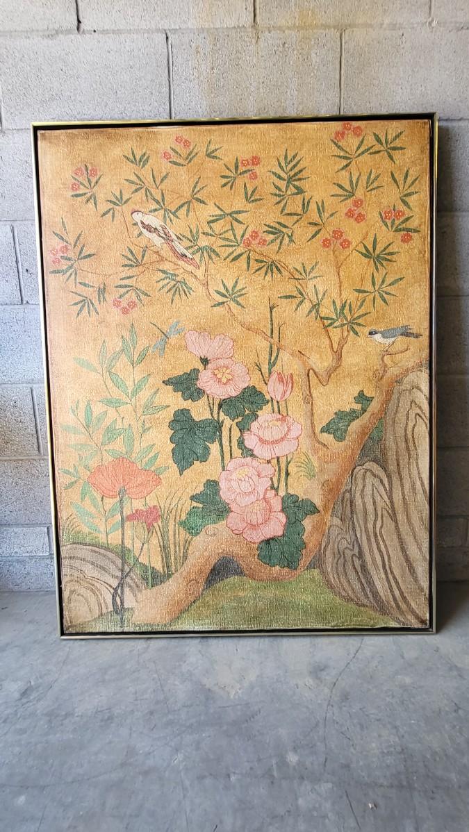BEAUTIFUL ASIAN FLAIR OIL PAINTING WITH FLOWERS TREES & BIRDS