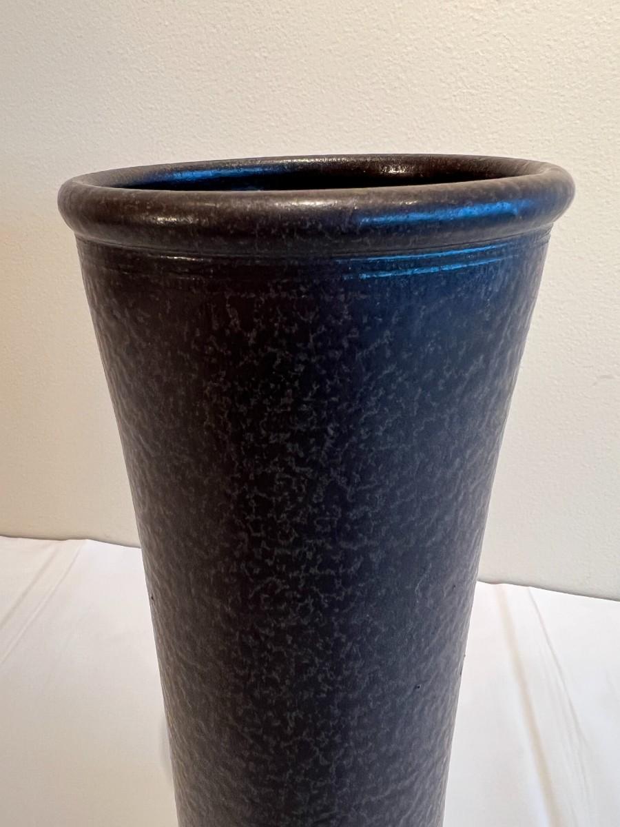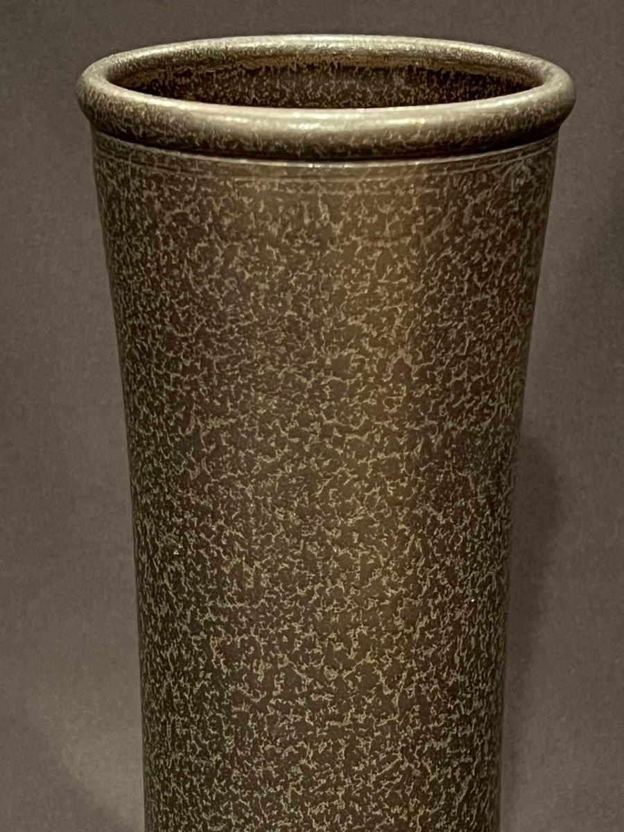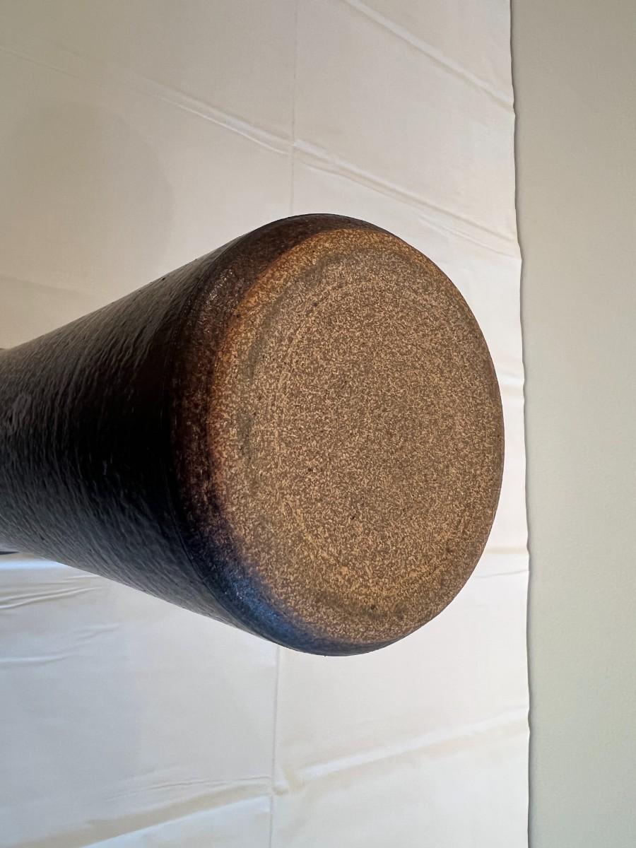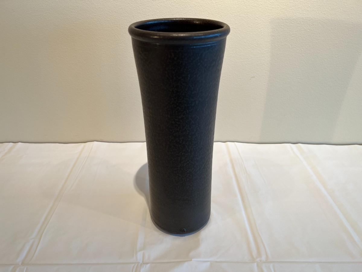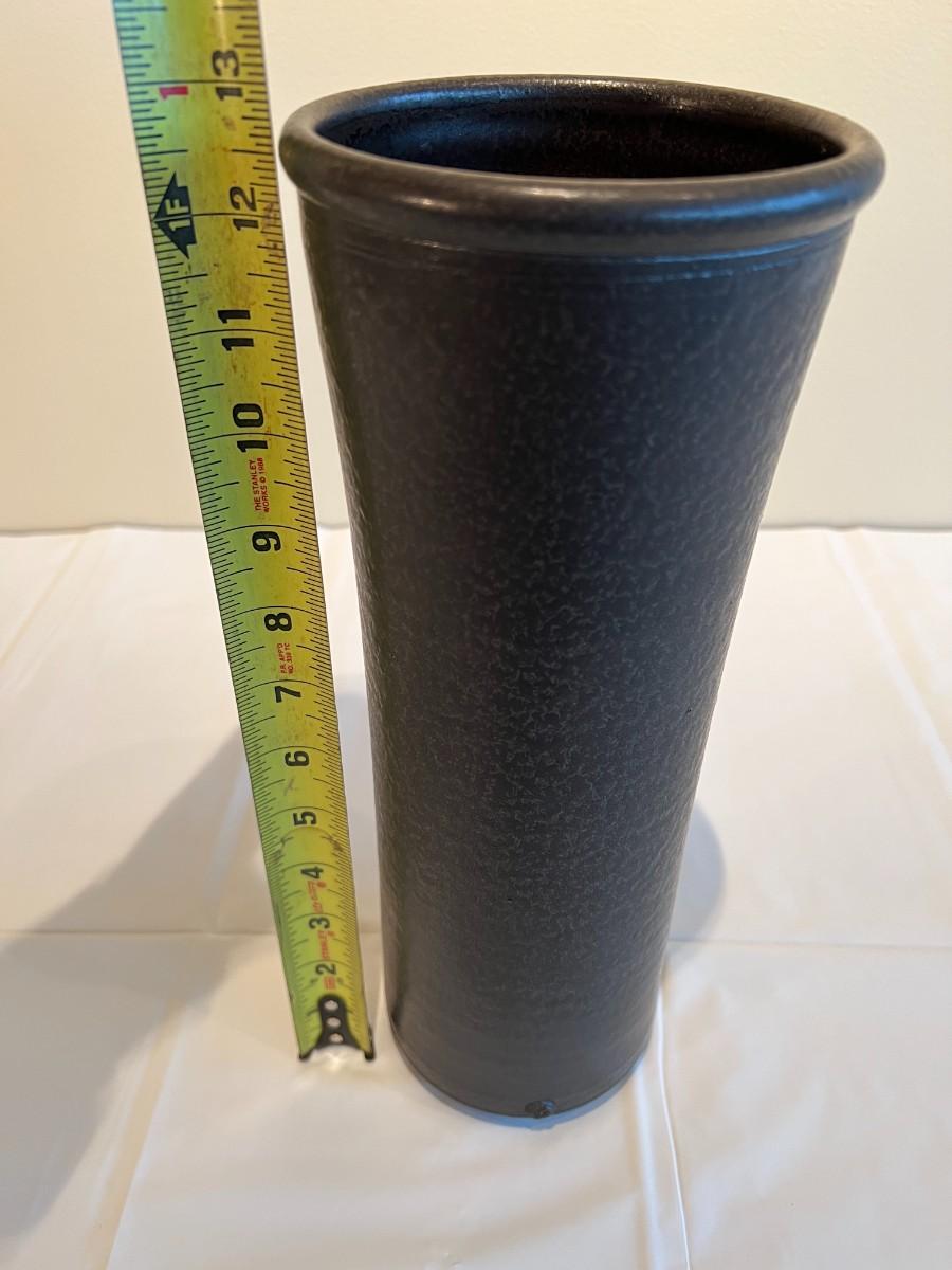 Beautiful Asian (appears to be a more antiquated form of Chinese characters) dark brown or black glazed ceramic vase. Glaze has a unique texture and color. Stamp is impressed into the vase (as shown in photos). Very good condition,