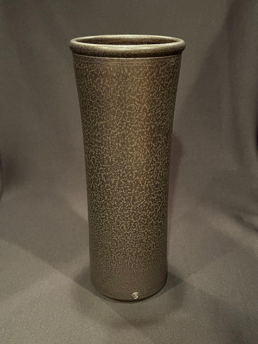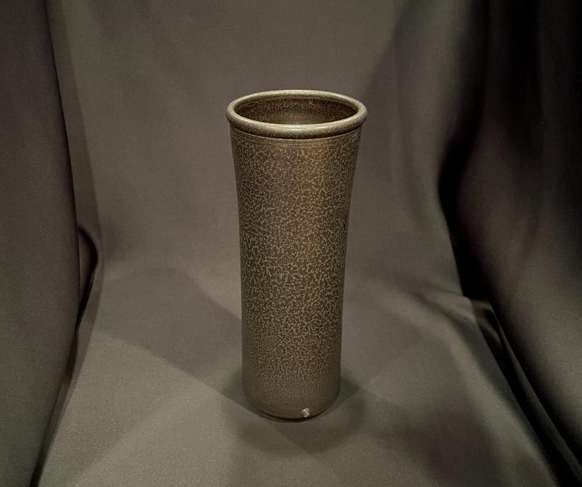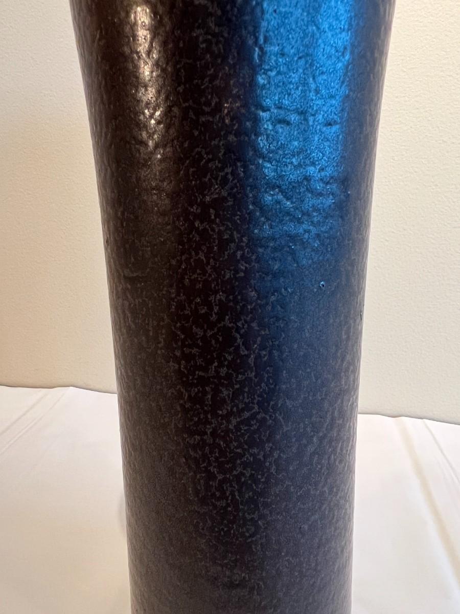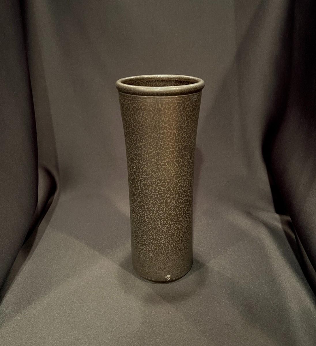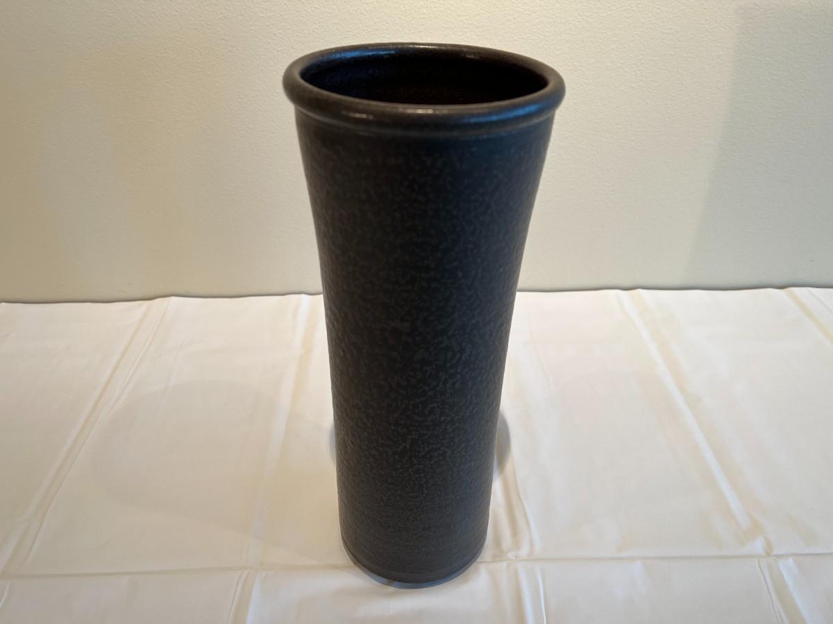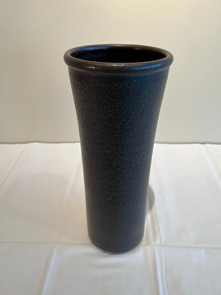 Beautiful Asian (appears to be a more antiquated form of Chinese characters) dark brown or black glazed ceramic vase. Glaze has a unique texture and color. Stamp is impressed into the vase (as shown in photos). Very good condition,