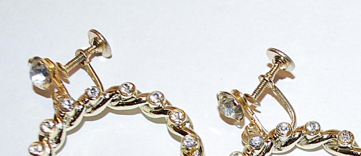 Beautiful Bejeweled Twisted Circle EARRINGS Set with 16 Stones and Screw Clasp