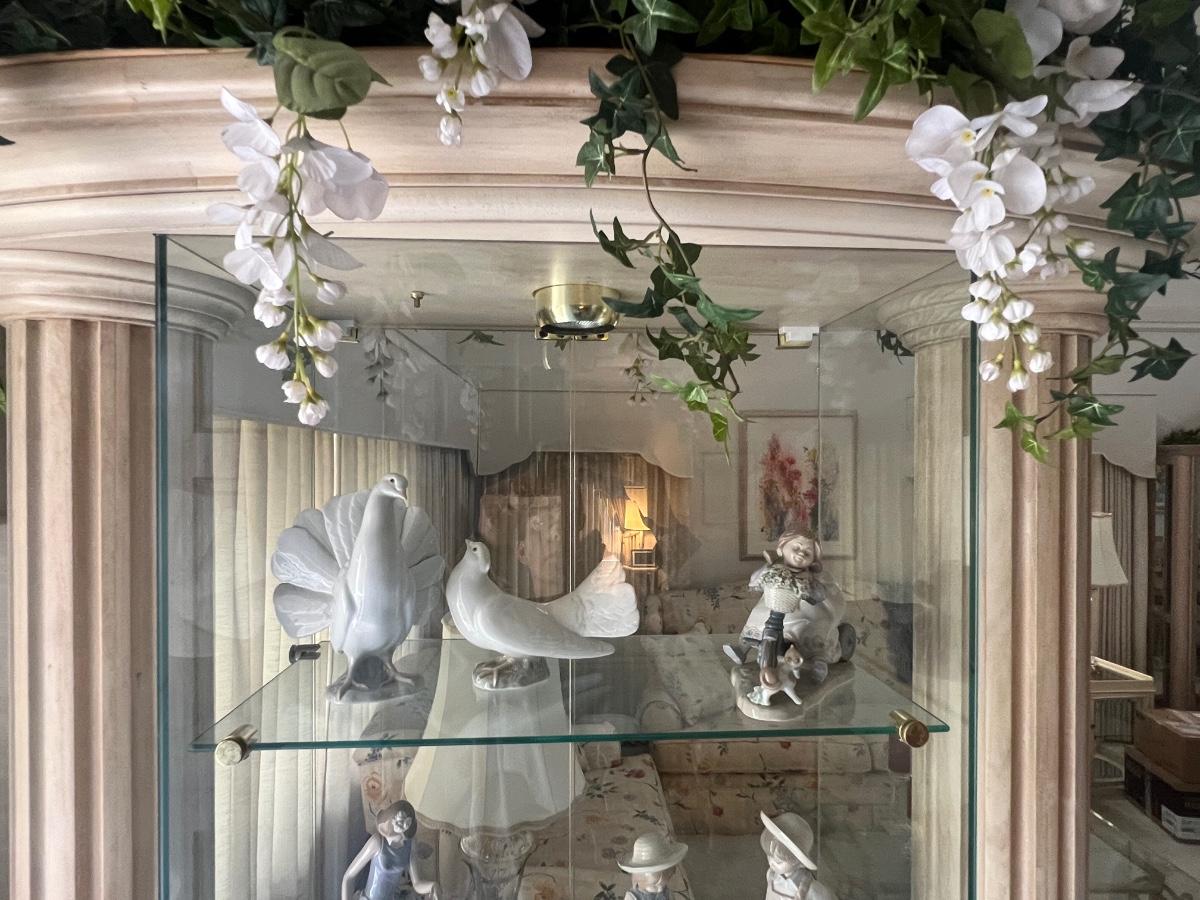 Glass Curio Display Cabinet Oval Birch Wood Lighted