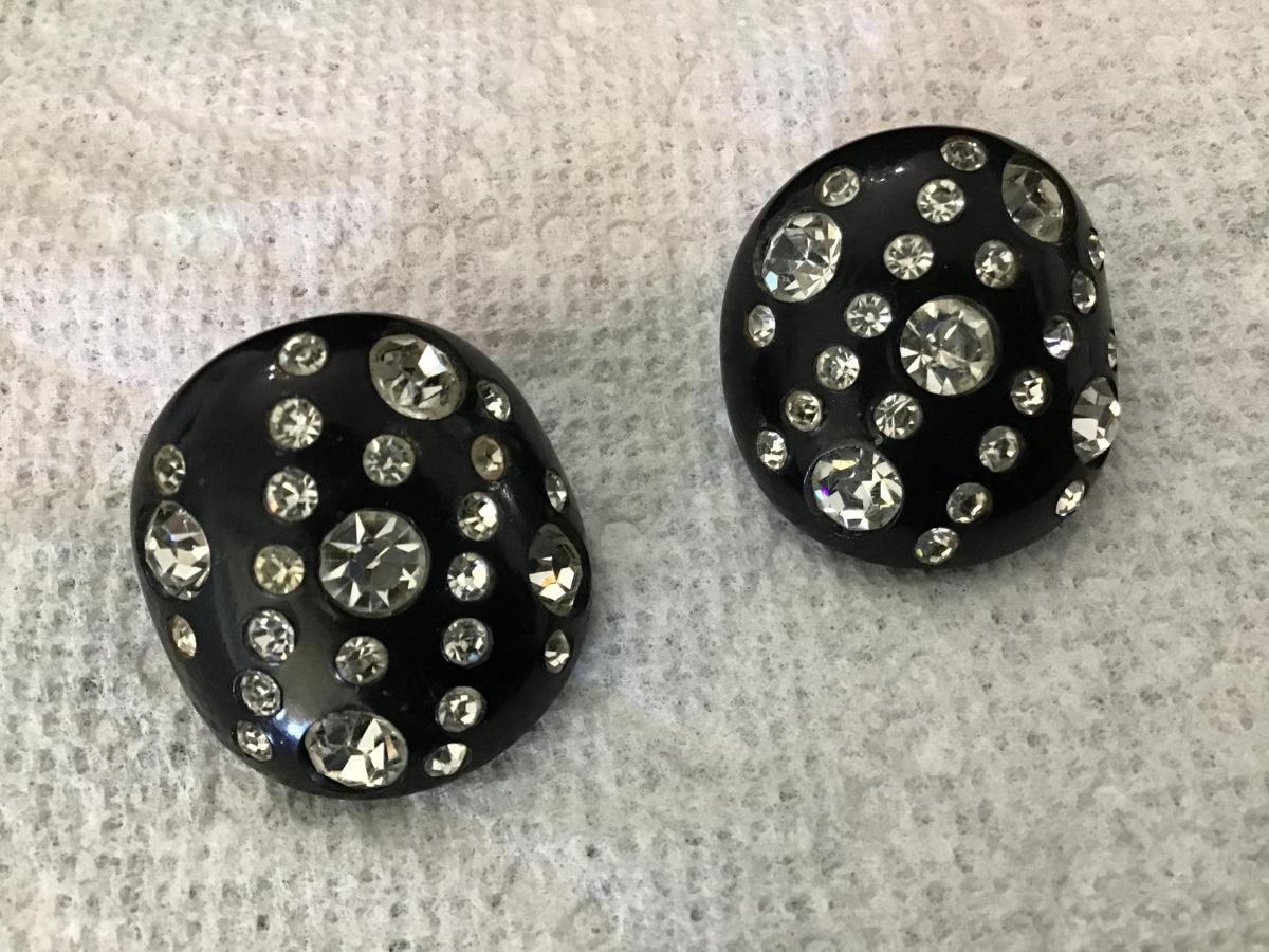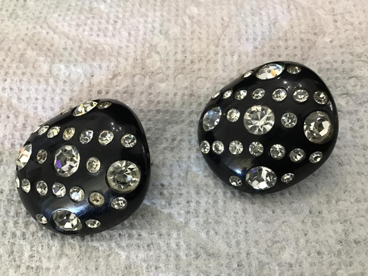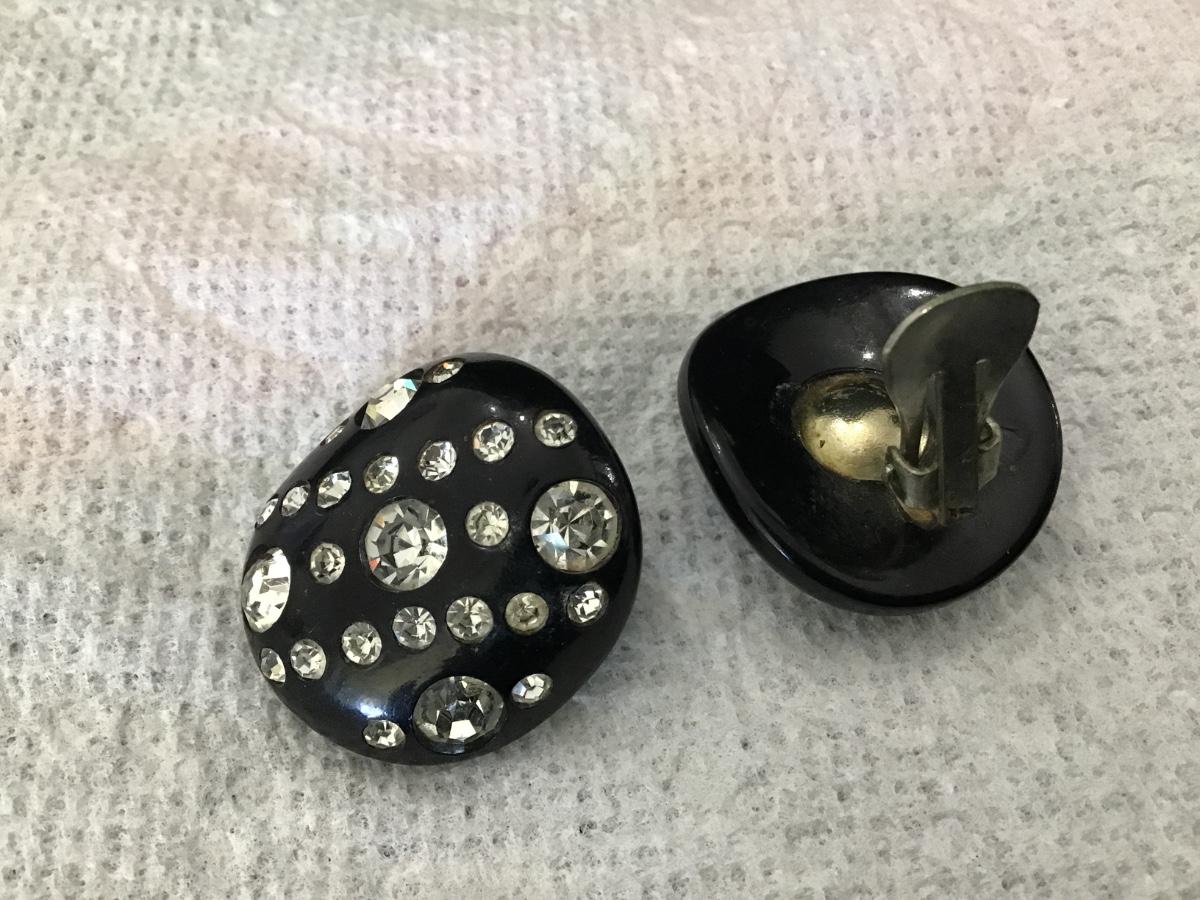 Beautiful. Black Celluloid Rhinestone Clip Earrings