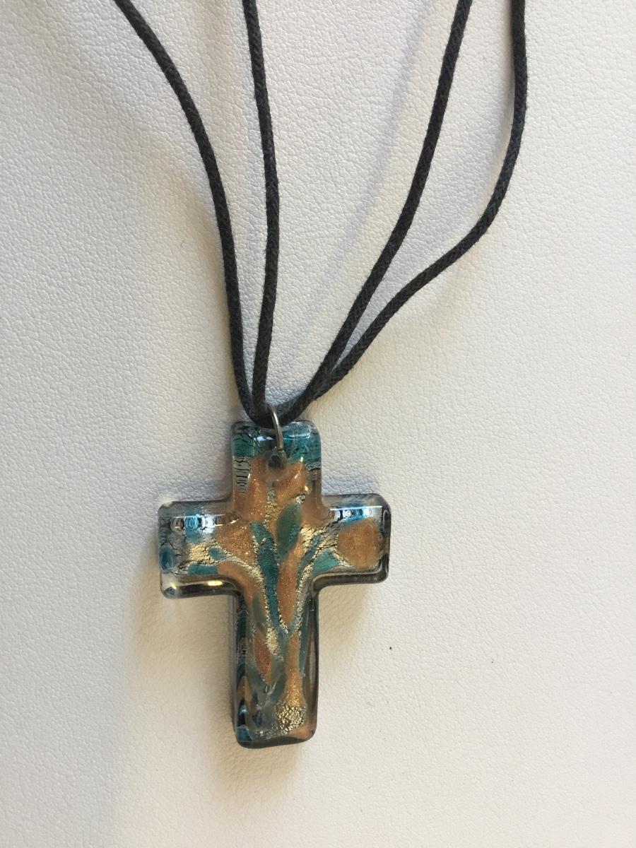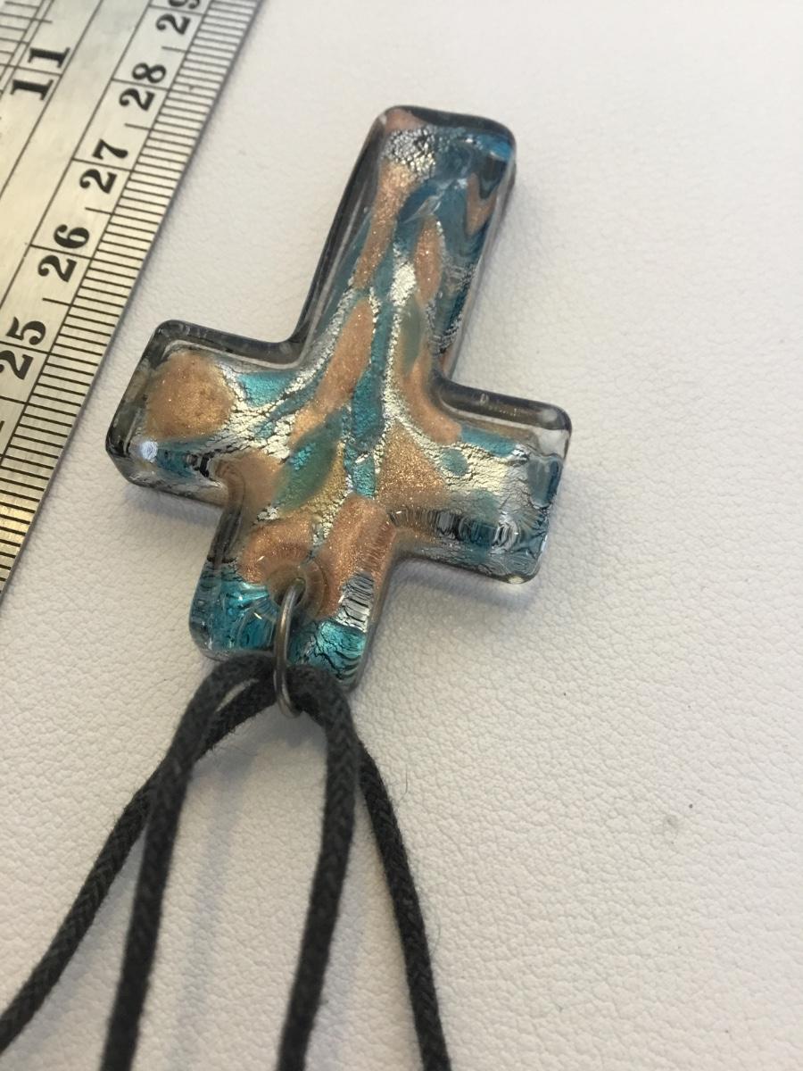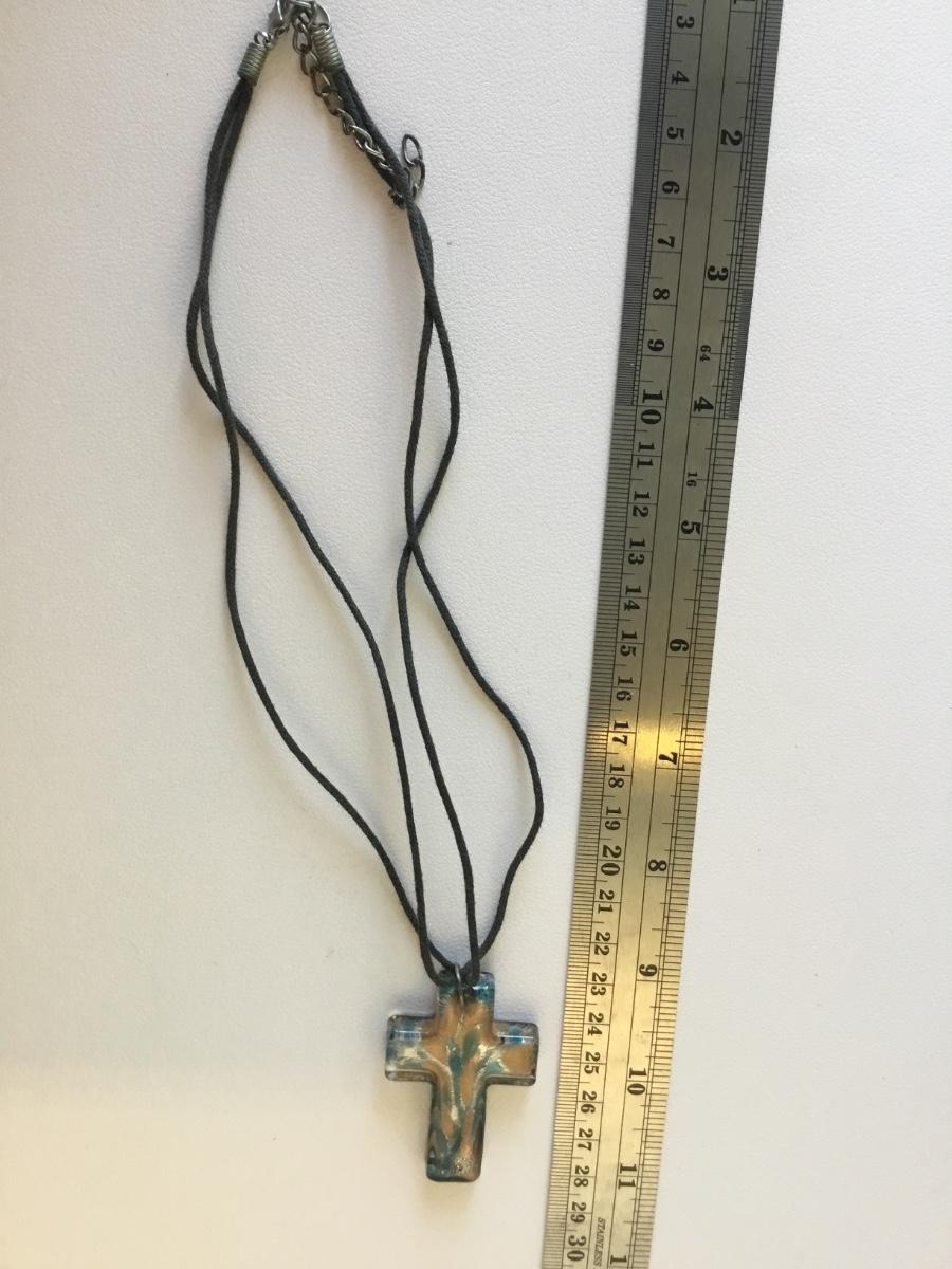 Beautiful black glass cross pendant necklace
