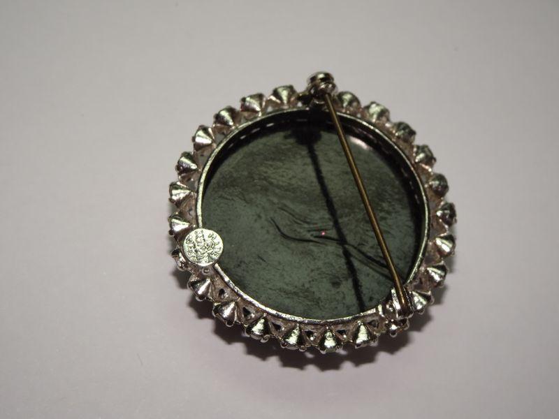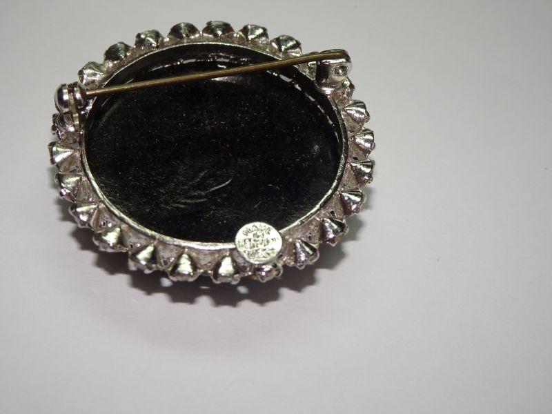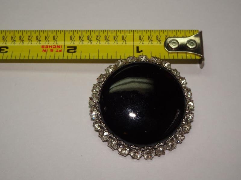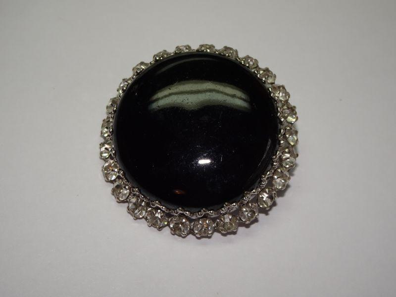 Beautiful Black Onyx and Rhinestone Brooch, West Germany