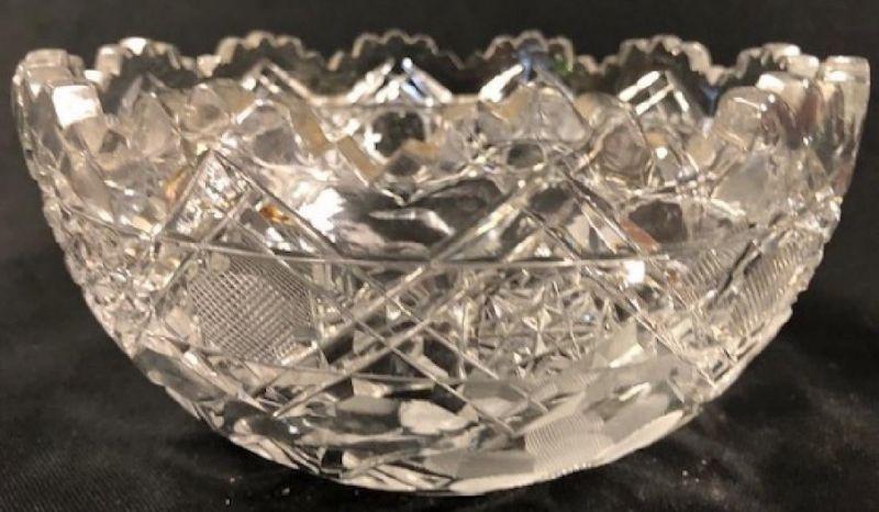 Description: Beautiful lead crystal bowl from Bliekristall. Floral pattern on lower sides and underside; starburst etching along sides with scalloped top. Material: glass. Measurement: approximate 4"h x 7"w (INCHES). Shipping cost: $20. Different rate for Alaska, California & Hawaii. International rate applies.