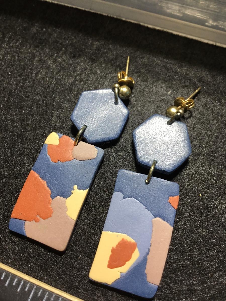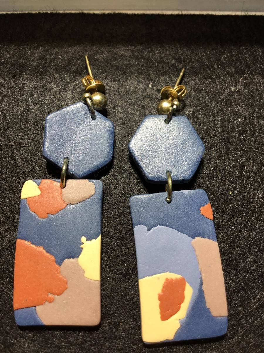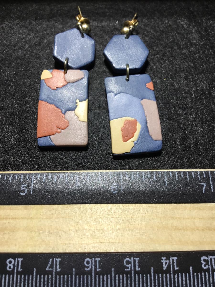 Beautiful blue clay type dangle fashion art earrings