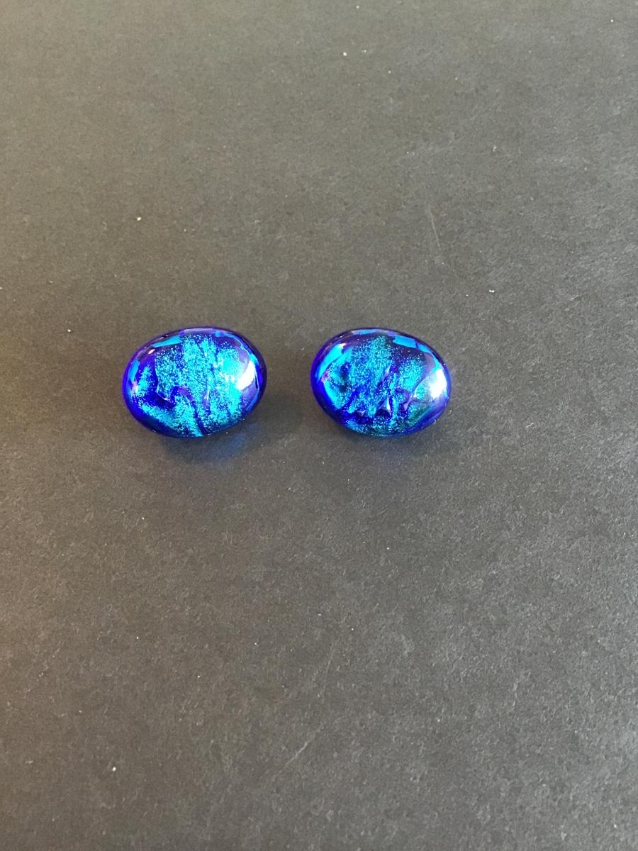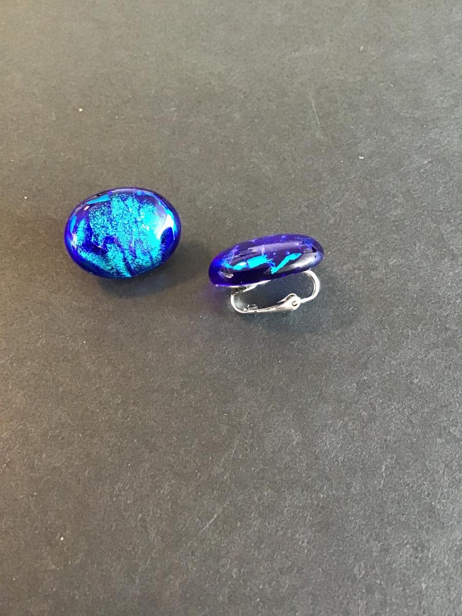 Beautiful Blue dichroic glass clip on earrings Please see attached photos