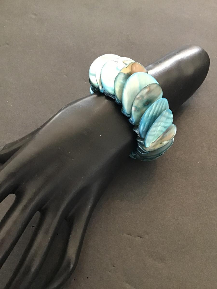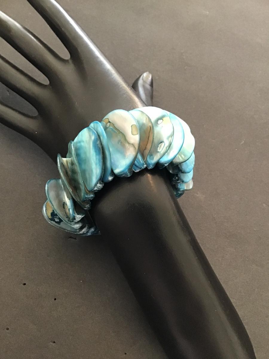 Beautiful blue dyed Abalone Shell stretchy bracelet please see attached photos