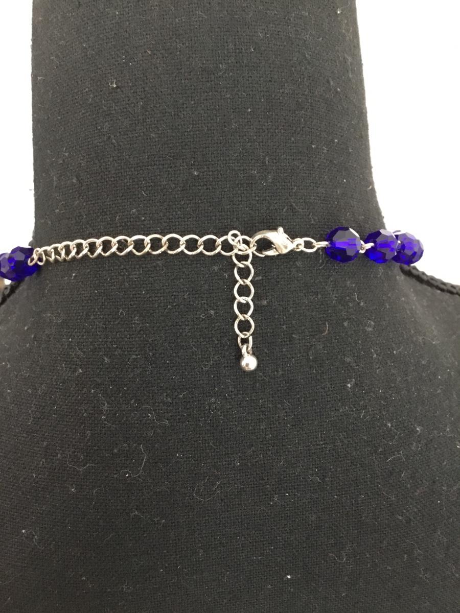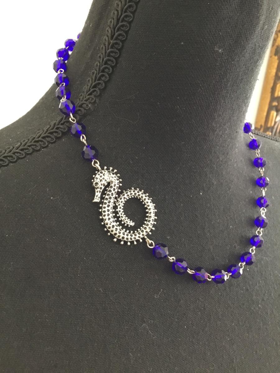 Beautiful blue glass bead, Silver tone necklace, and seahorse pendant