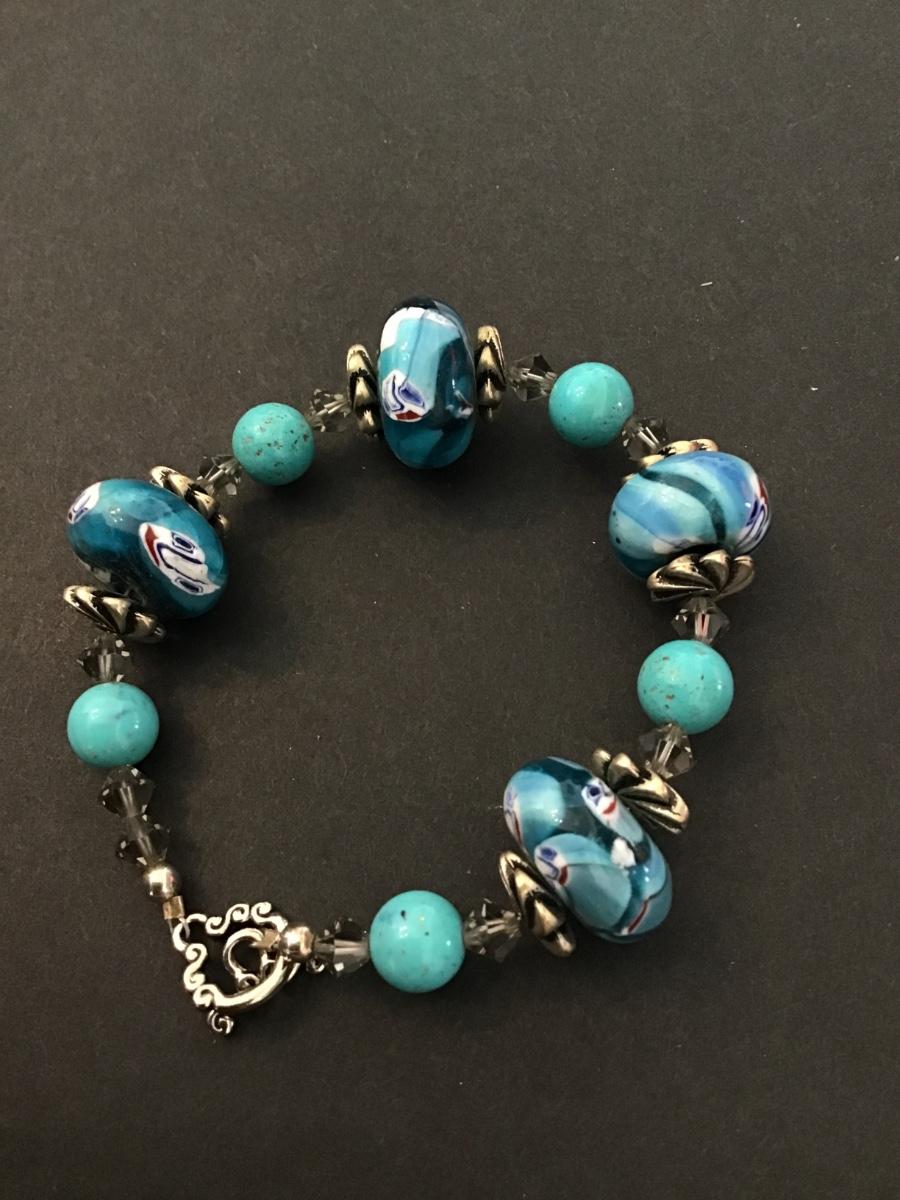 Beautiful blue glass beaded vintage bracelet