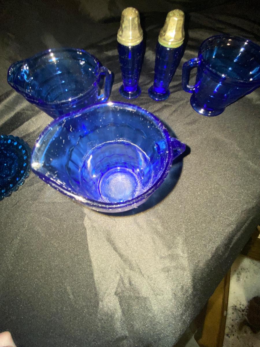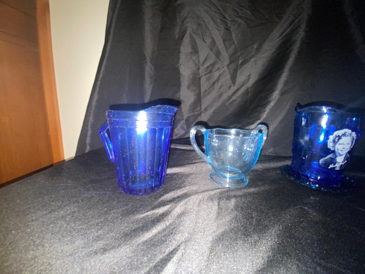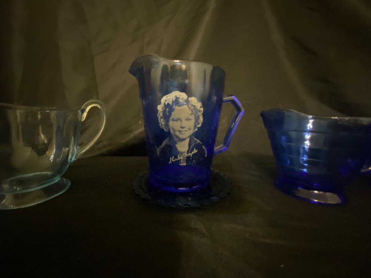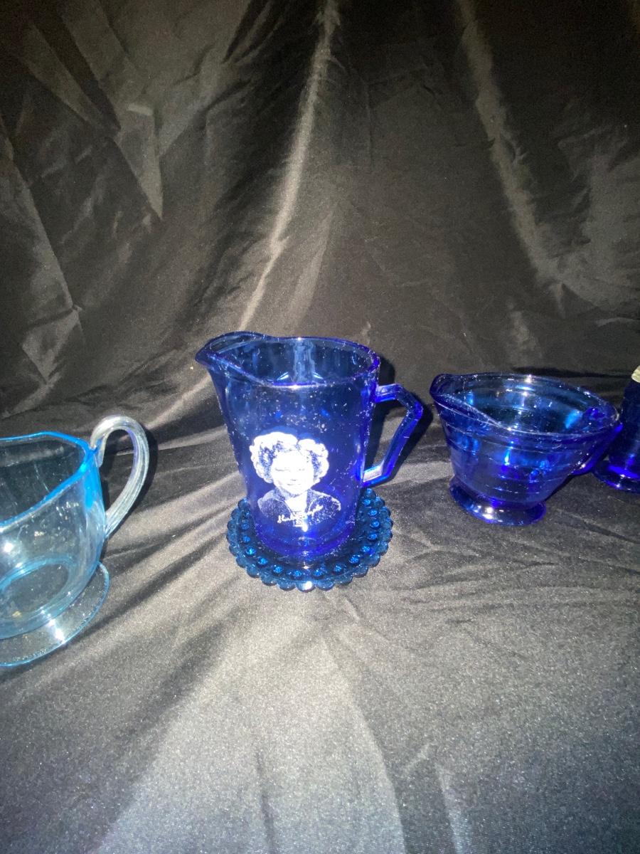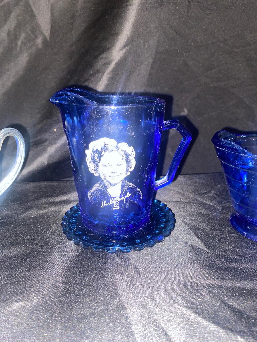 BEAUTIFUL COBALT BLUE GLASS, SHIRLEY TEMPLE CHILD SIZED CREAMER PITCHER & AND A BIT MORE