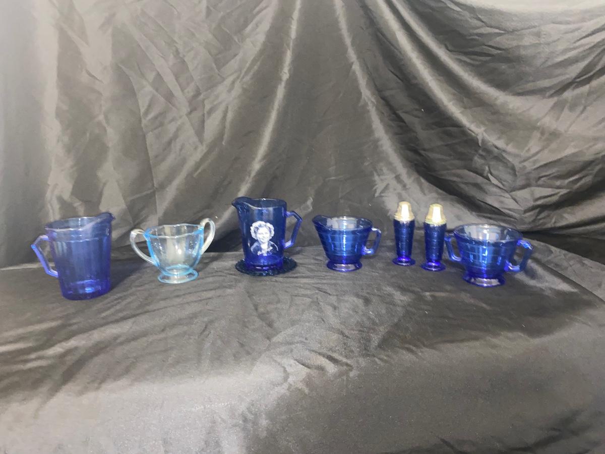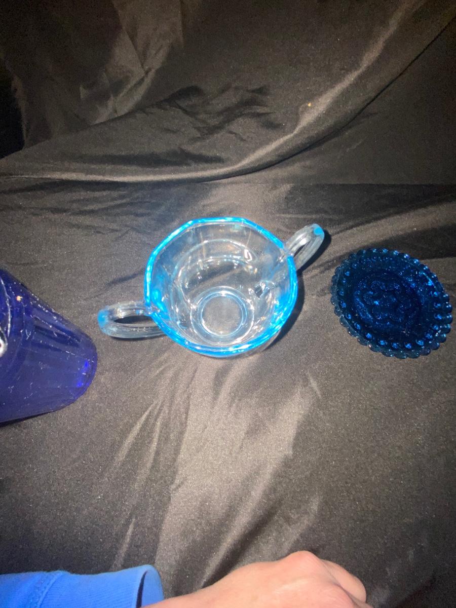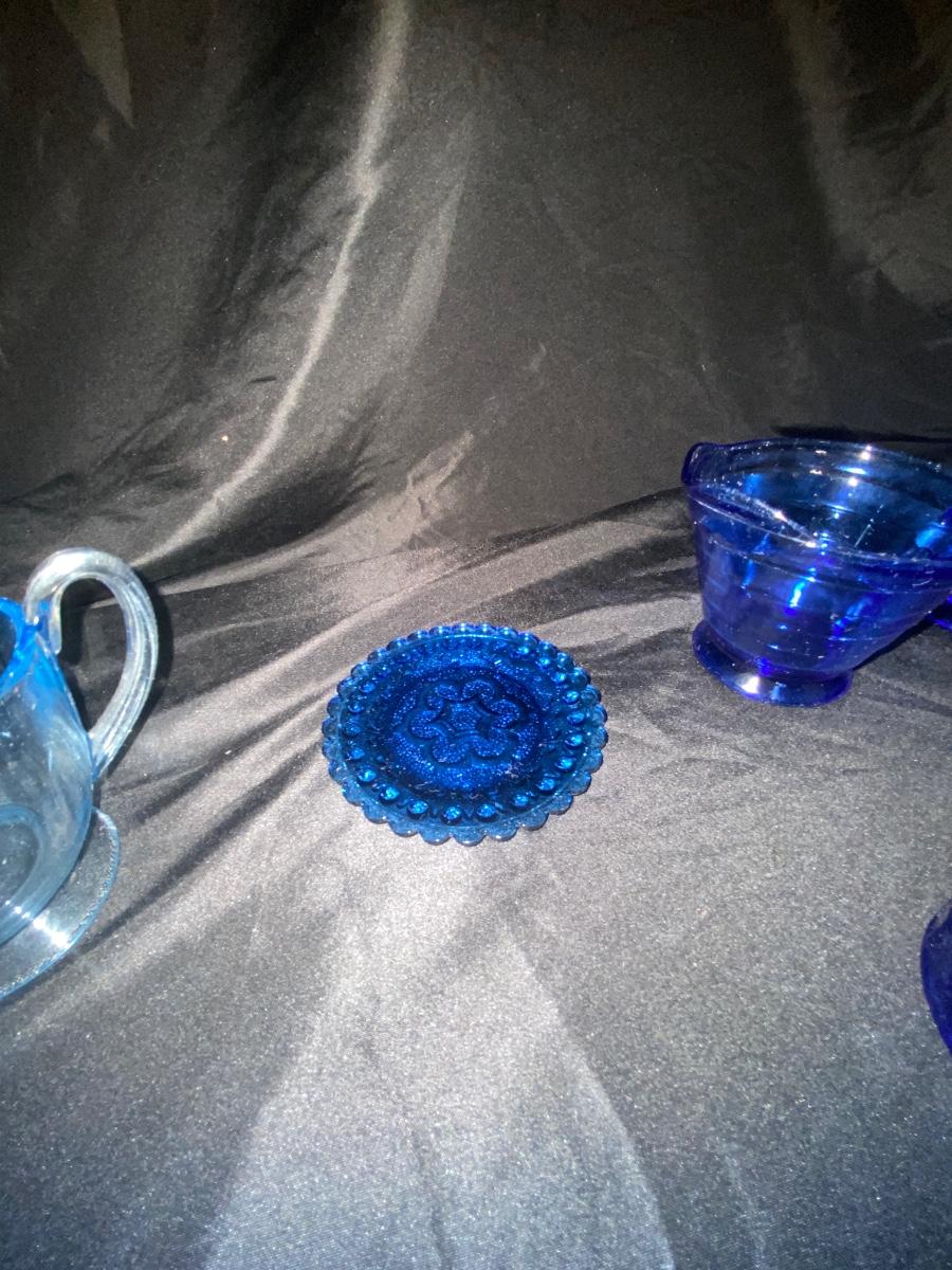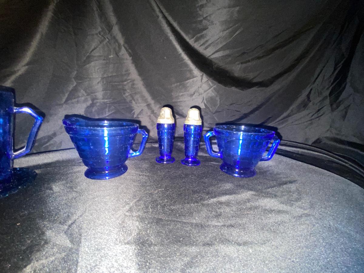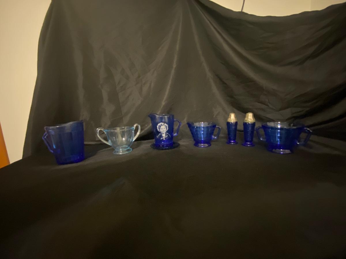BEAUTIFUL COBALT BLUE GLASS, SHIRLEY TEMPLE CHILD SIZED CREAMER PITCHER & AND A BIT MORE