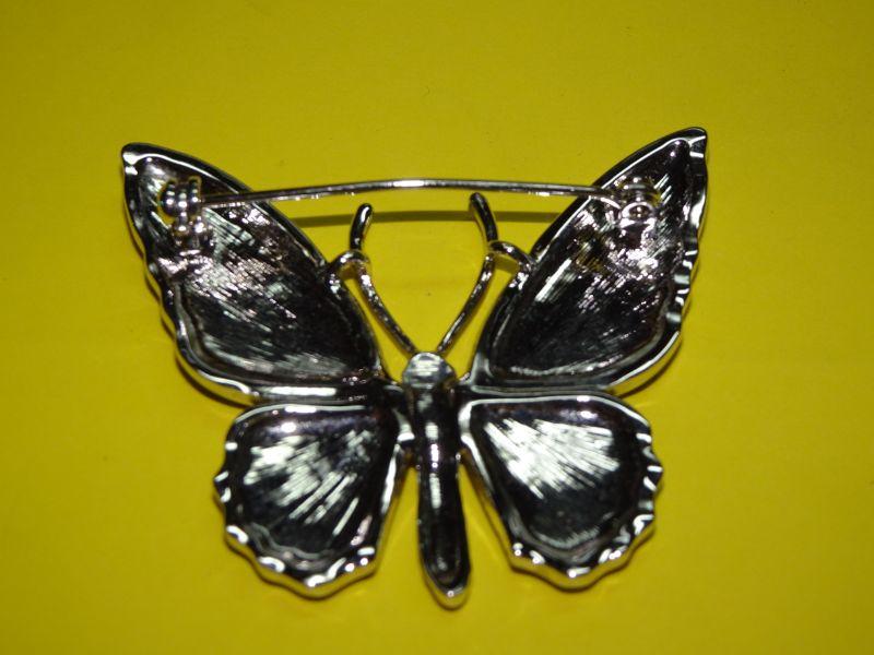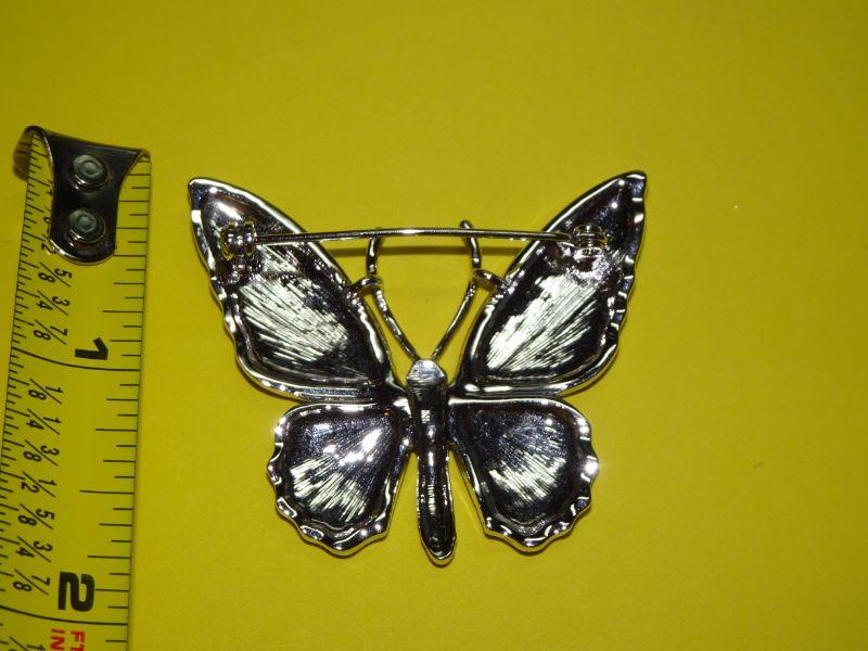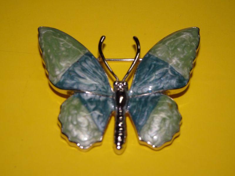 Beautiful Blue & Green Butterfly Brooch, Silver Tone