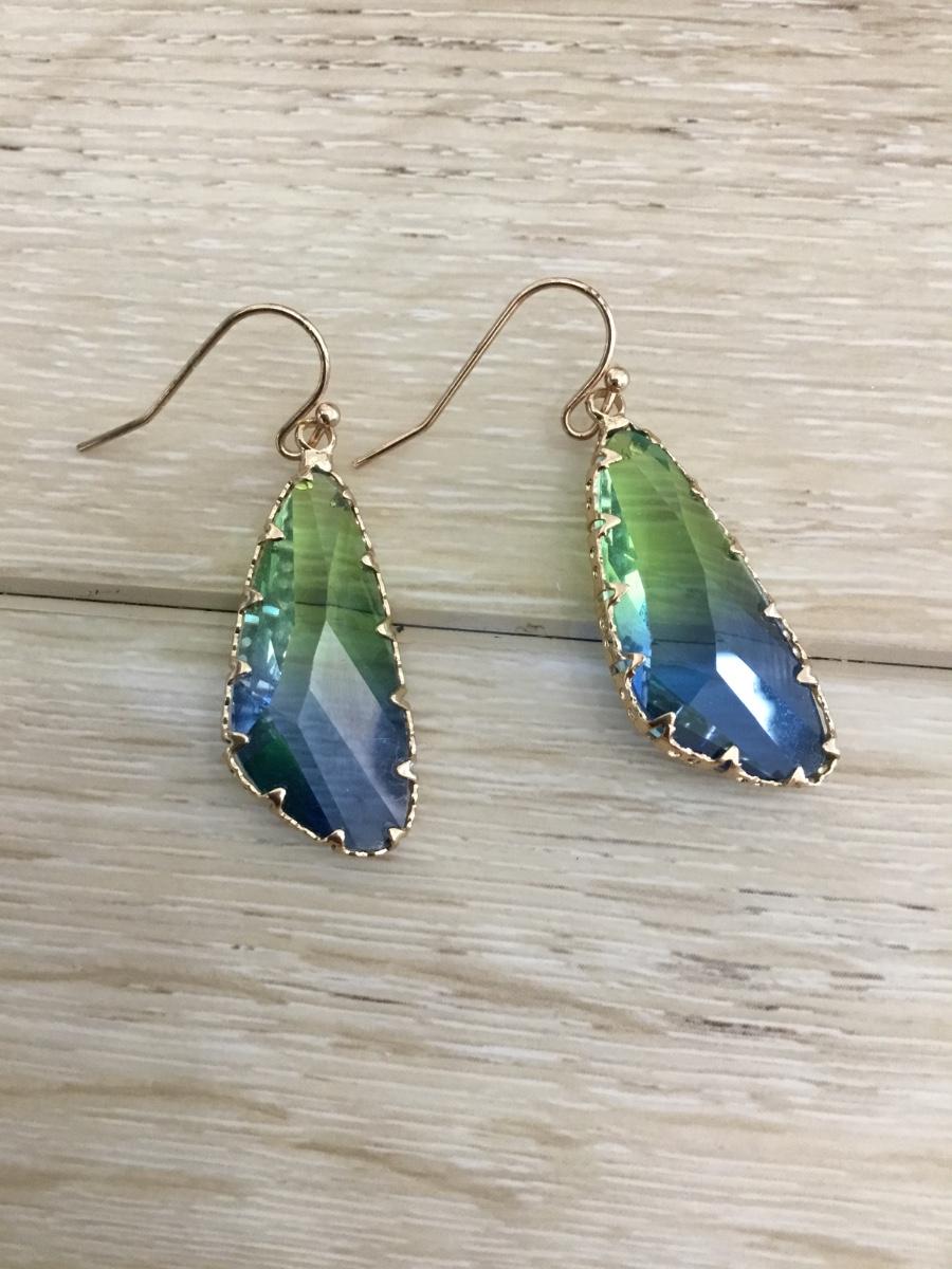 Beautiful blue green drop crystal earrings
