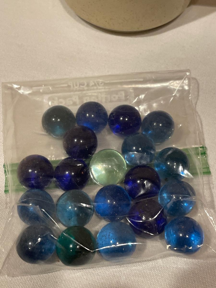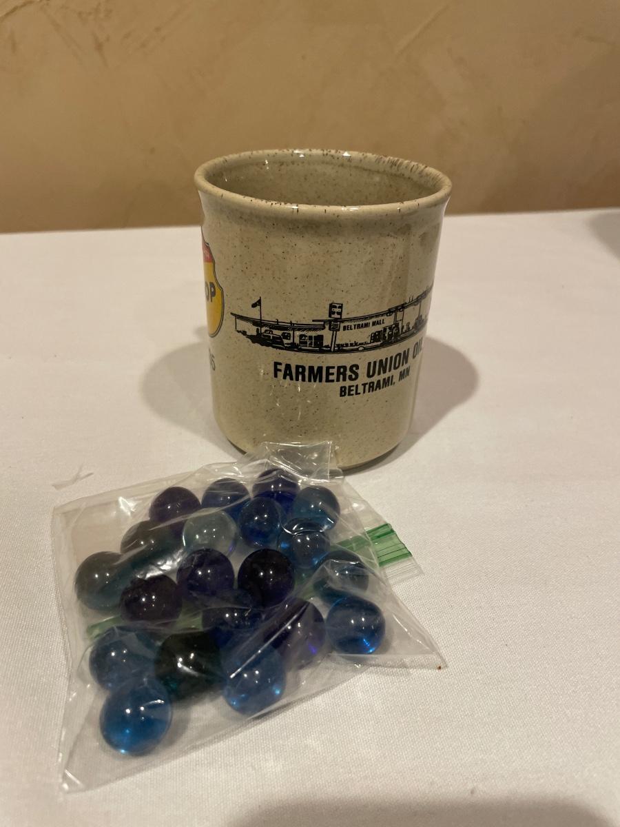 Beautiful blue marbles and vintage mug