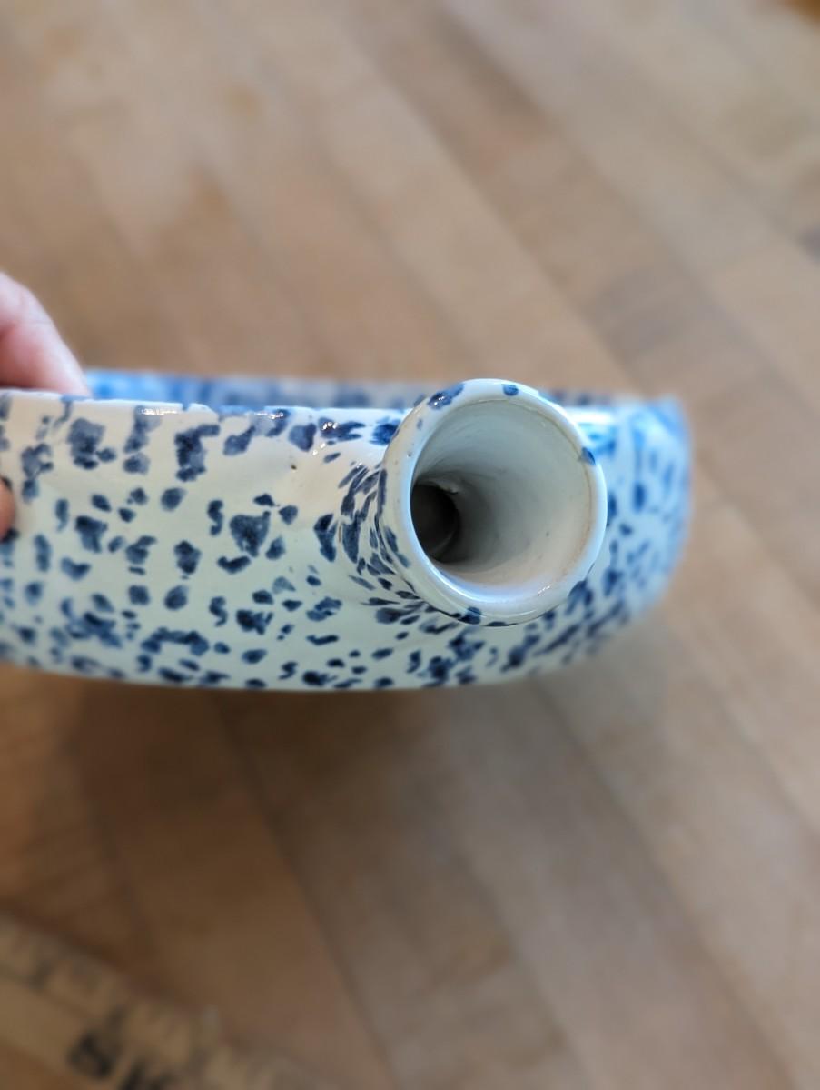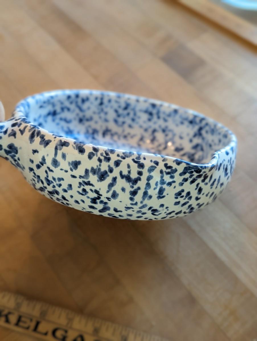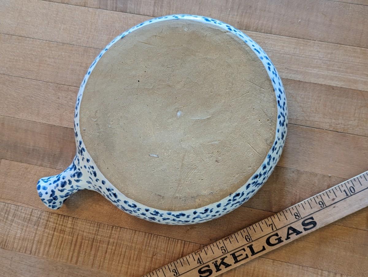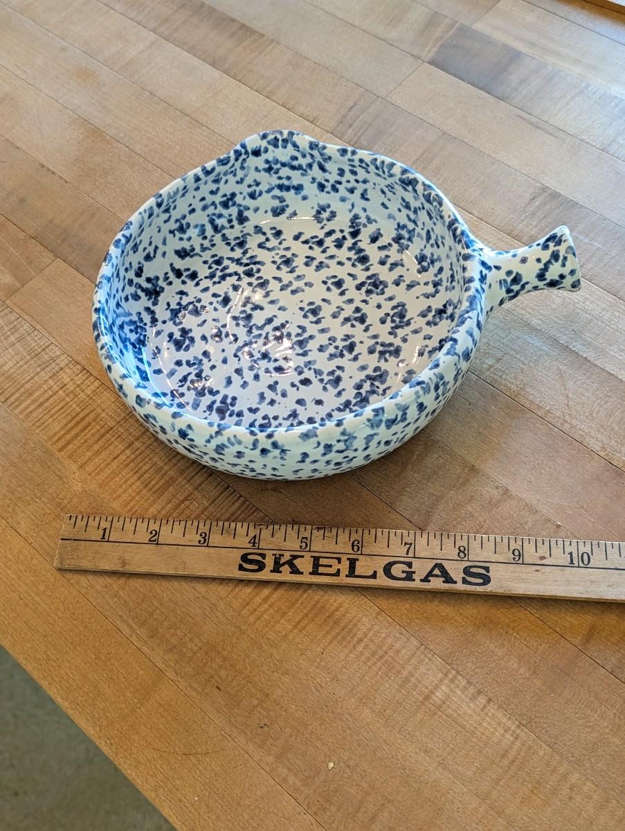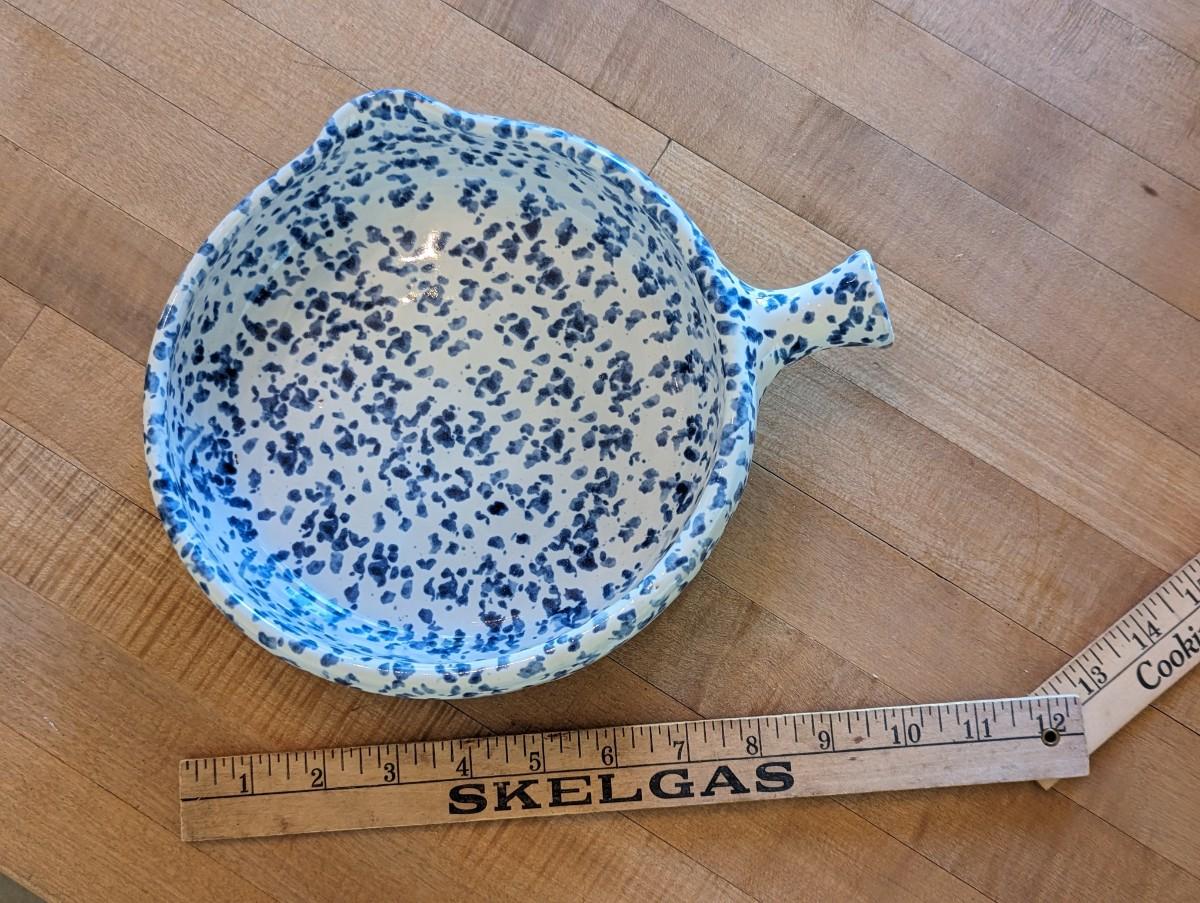 Beautiful Blue over White Sponge Ware Single Handle Casserole French Baker