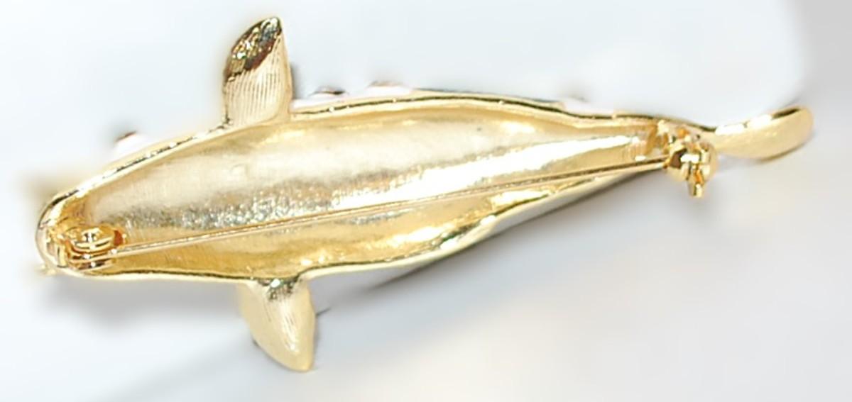 Beautiful BLUE & WHITE KOI GOLDFISH BROOCH (2½" x 1") with Green Eyes and Gold Colored Fins on a Gold Tone Setting