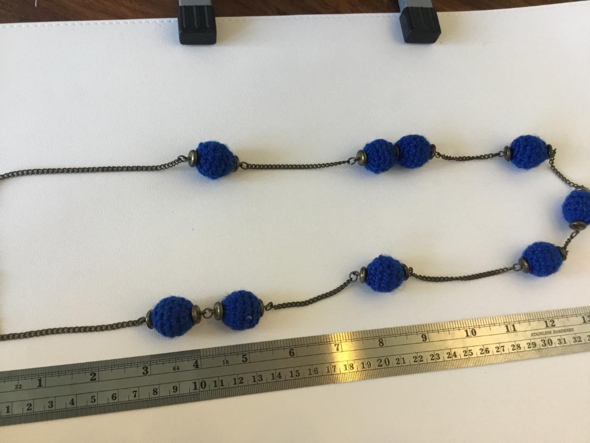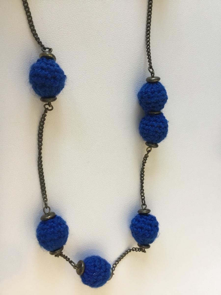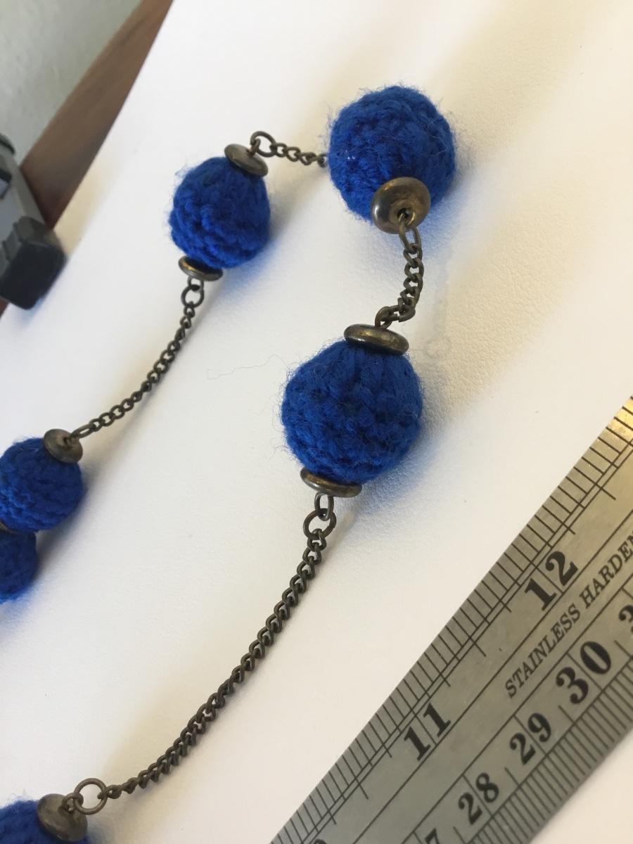 Beautiful blue yarn beaded fashion necklace