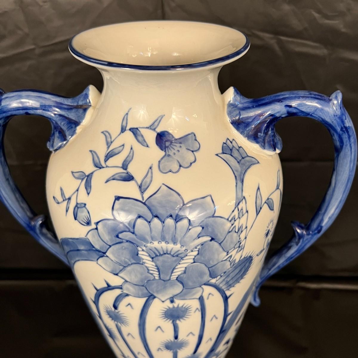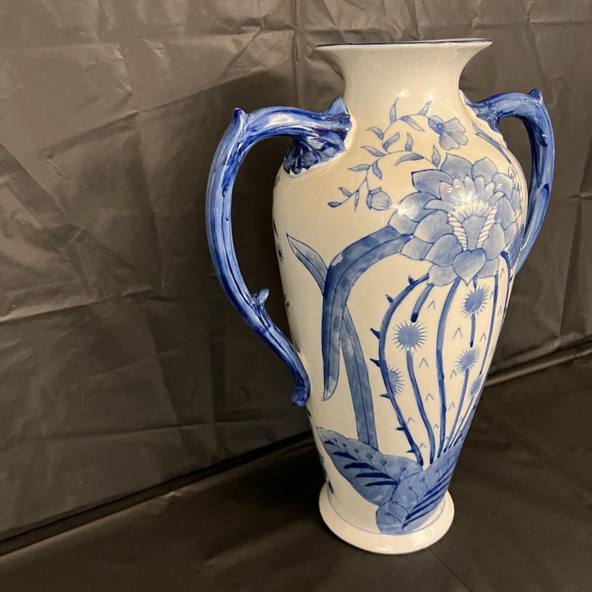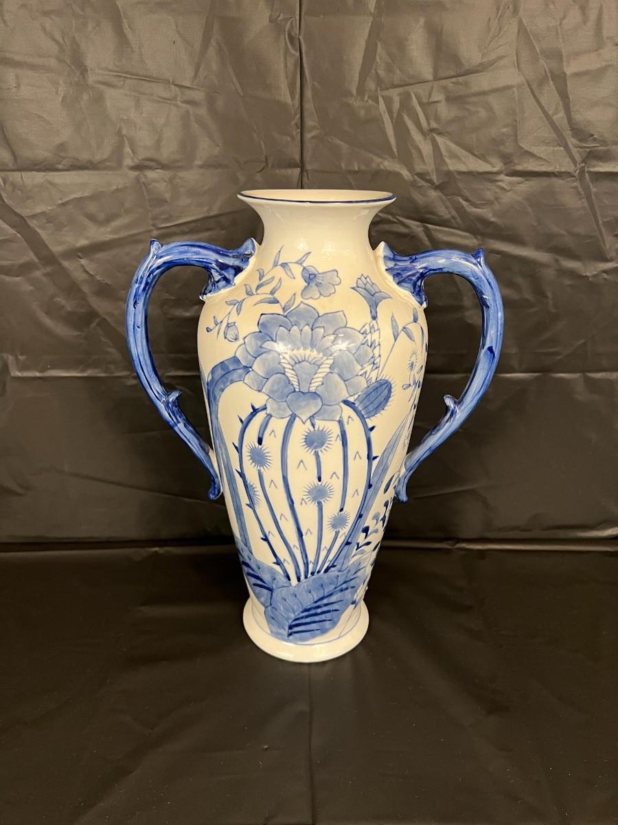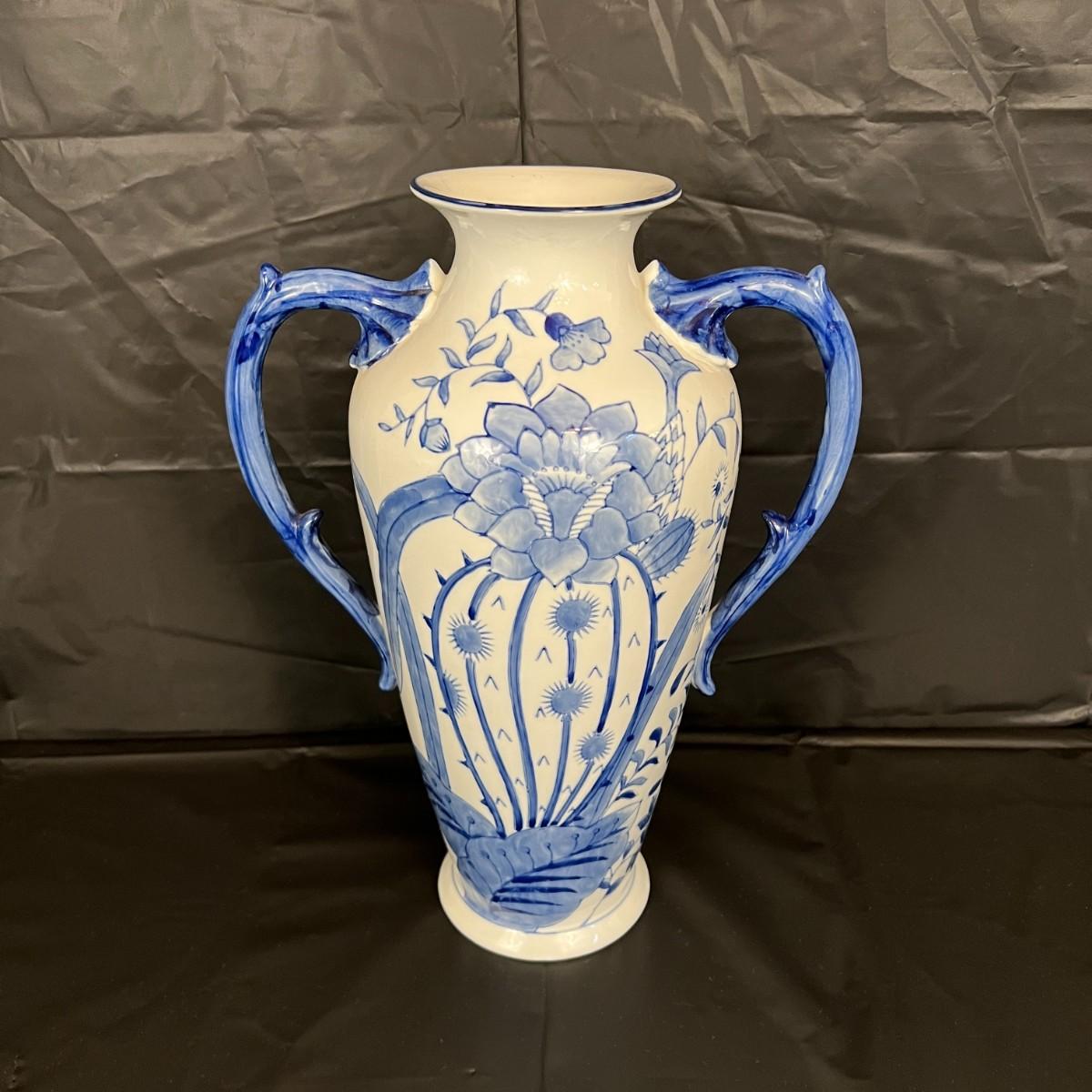 Beautiful Bombay China Blue and White Glazed Amphorae Vase with Handles