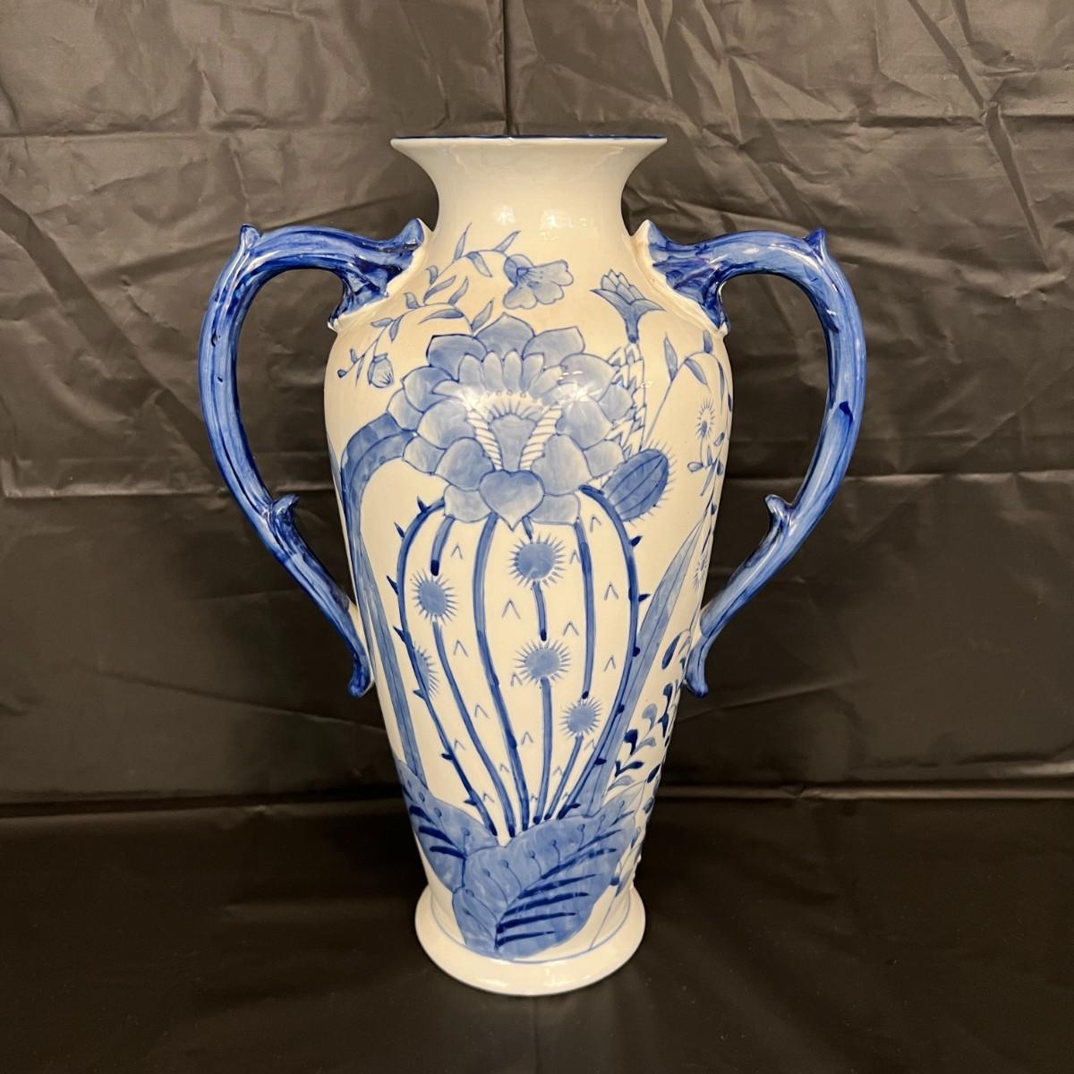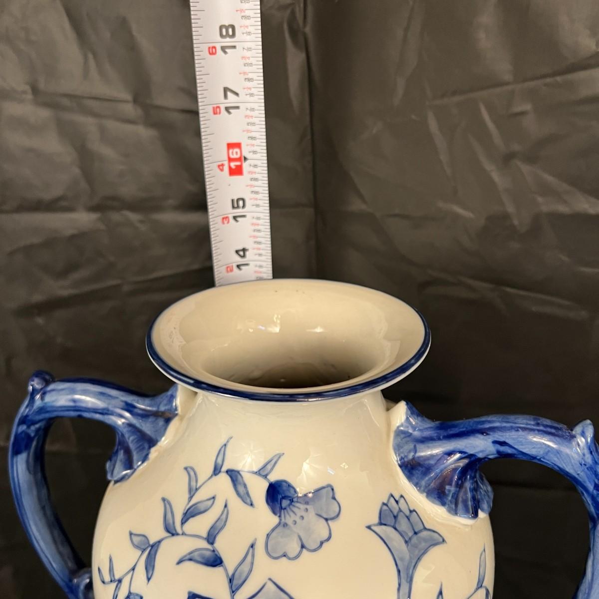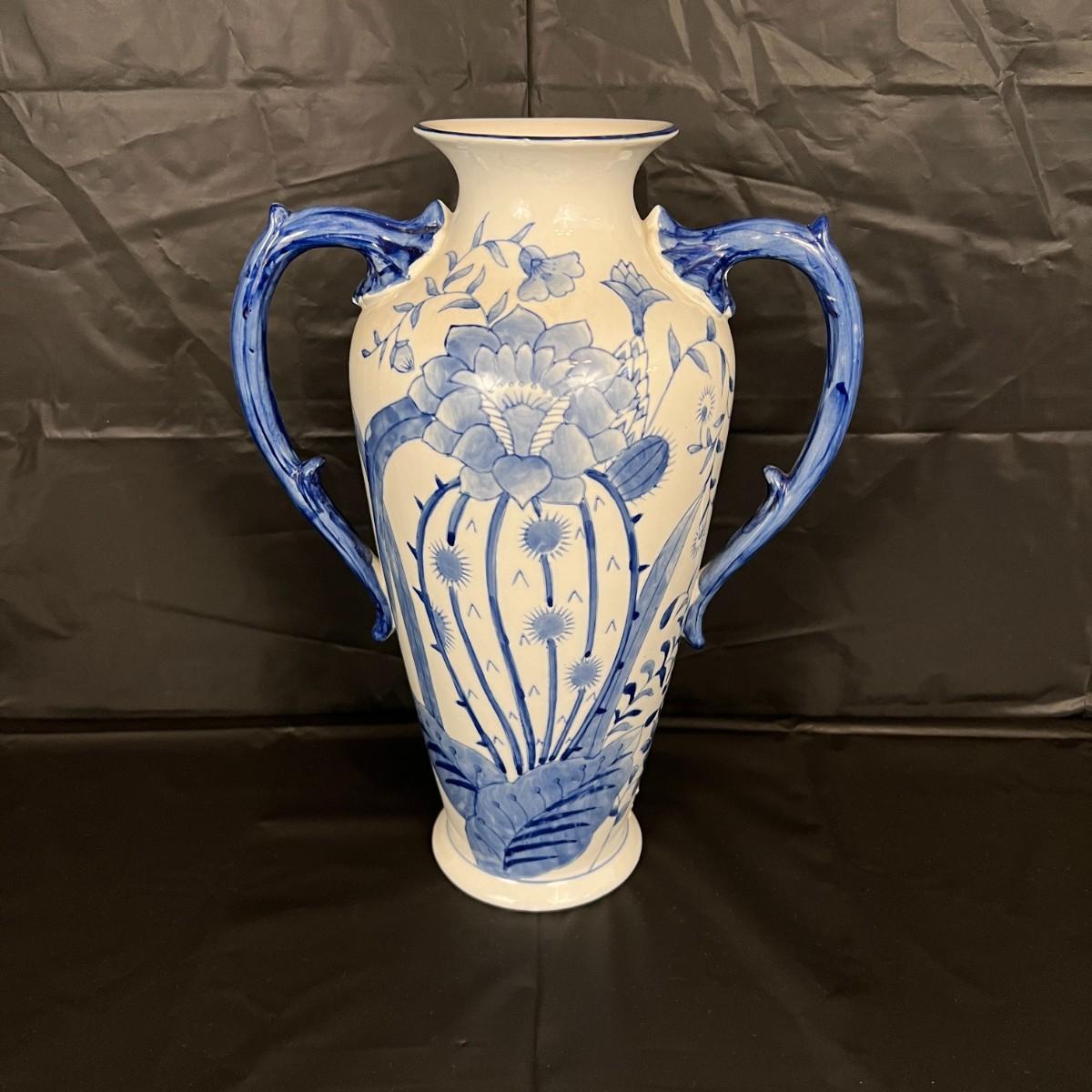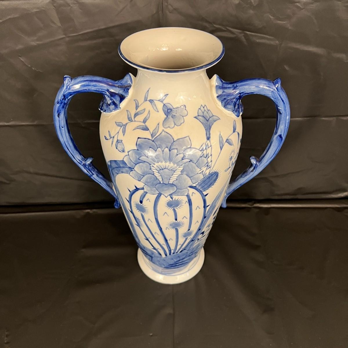 Beautiful Bombay China Blue and White Glazed Amphorae Vase with Handles