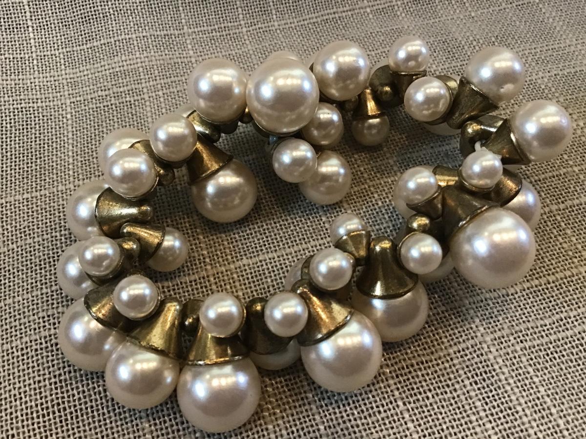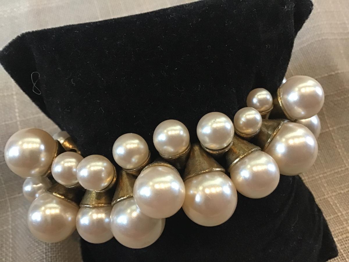 Beautiful Brass Tone Faux Pearl Bracelet