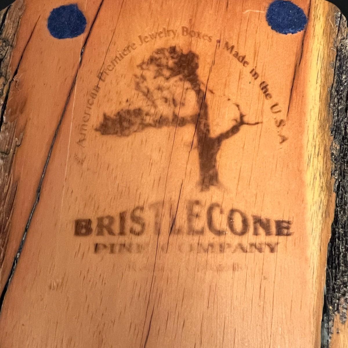 Beautiful Bristlecone Pine Company, American Premiere Jewelry Boxes, Made in the U.S.A. Such a unique jewelry box (perfect for the nature guy or gal in your life! gift yourself!) made from a natural Bristlecone Pine tree, and has two drawers lined with a deep blue velvet or felt lining material. In very good condition, as shown in images.