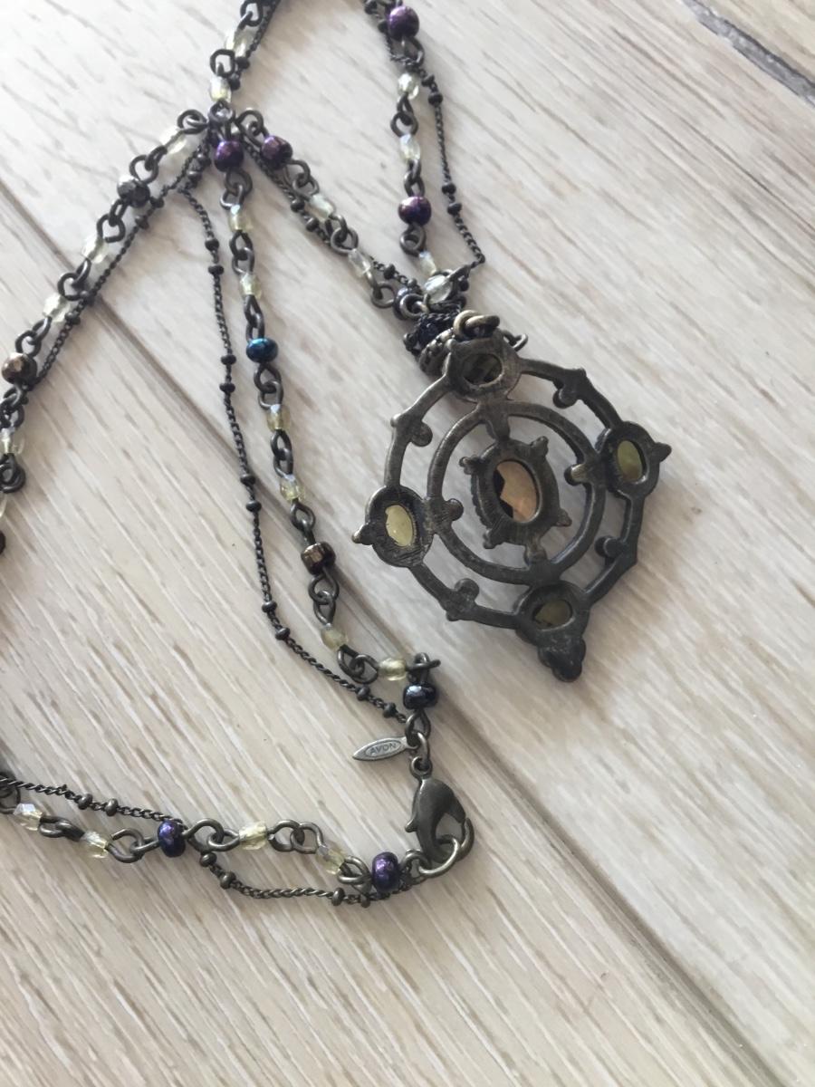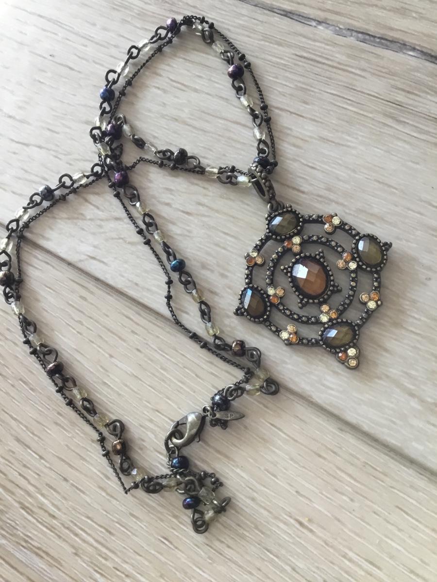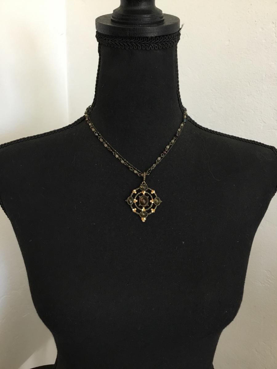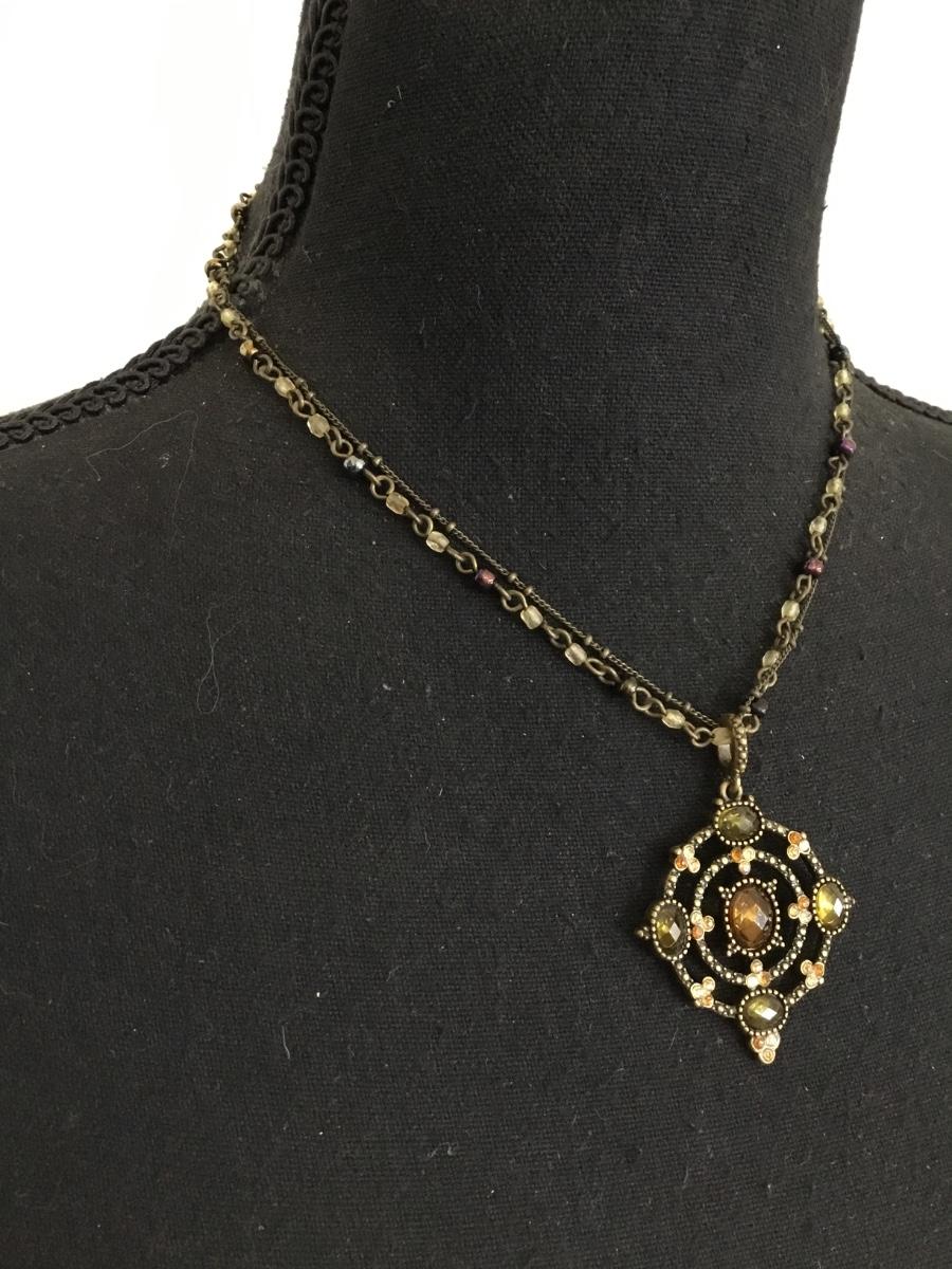 Beautiful bronze, toned Avon, amber crystal pendant necklace