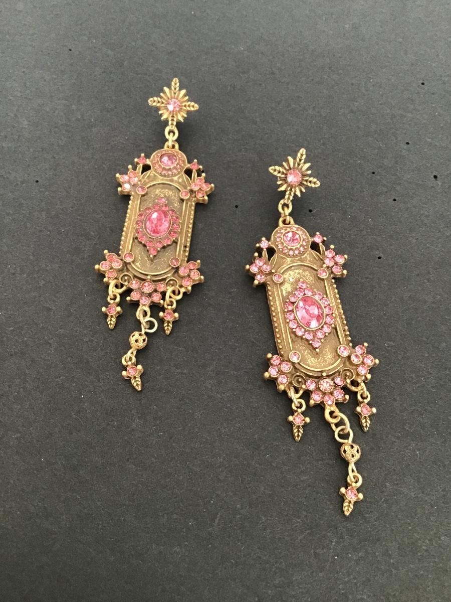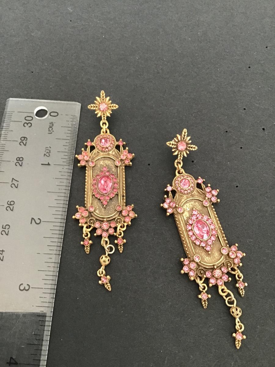 Beautiful brushed gold tone earrings w/ pink rhinestones please see attached photos