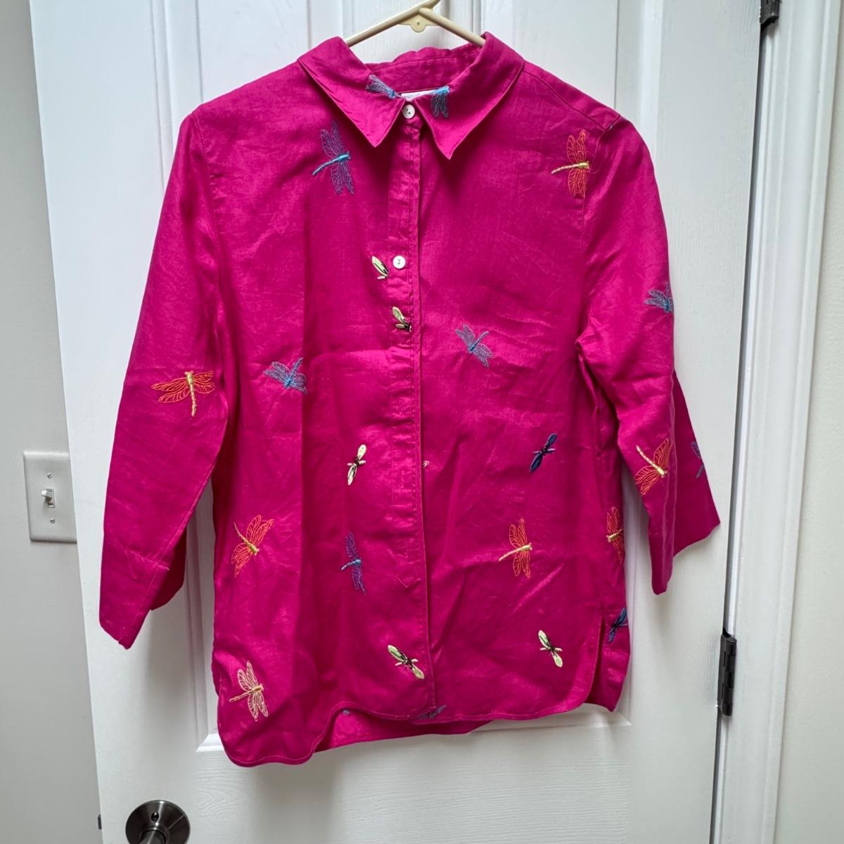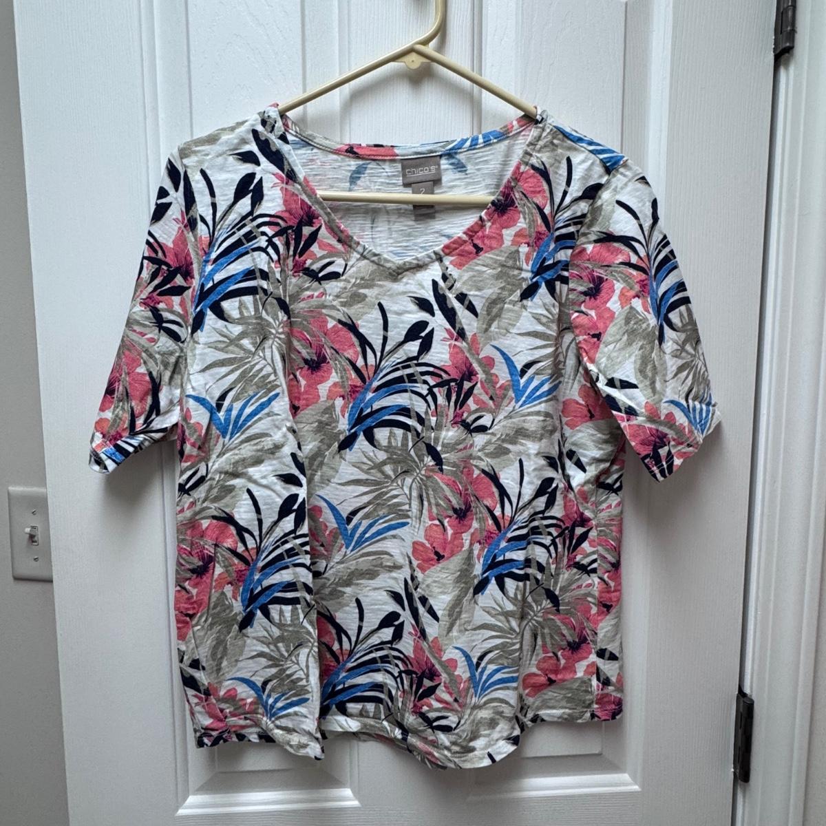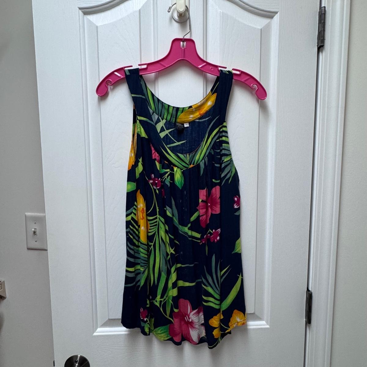 This lot of warm weather clothing includes one beautiful caftan with a pink and grey tie-dye pattern. It also includes two Kim Rogers blouses, one yellow Sonoma shirt, one Chicos shirt, one Ann Taylor shirt, and one Blue Island tank top. You’ll also find one J. Jill tunic, one Talbots shirt, one tank from Hibiscus Collection Hawaii, one Liz Claiborne blouse, and one shiny tank top by I.N. Studio. The caftan does not have tags, but it appears to be one size fits all. It has a few stains on it - see pictures. Also, see pictures for sizes. Shipping available.