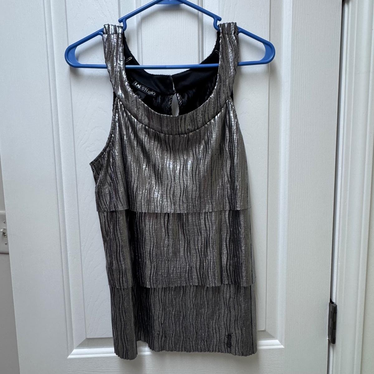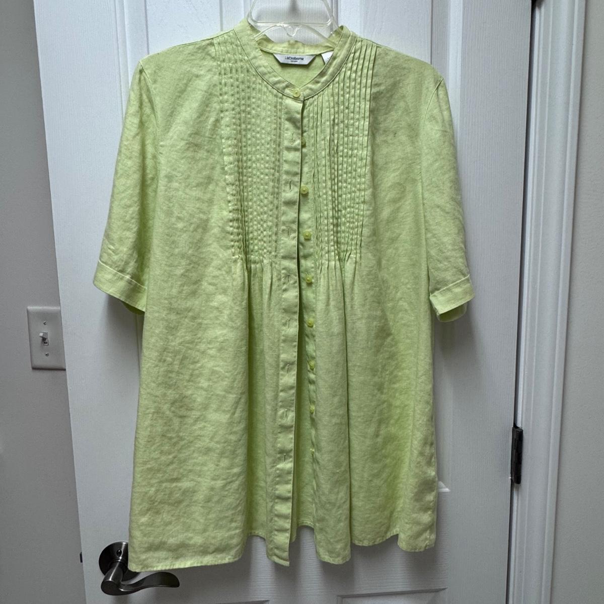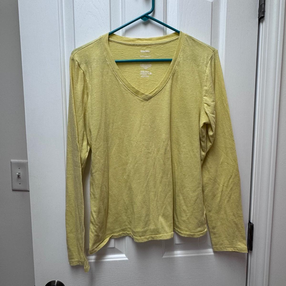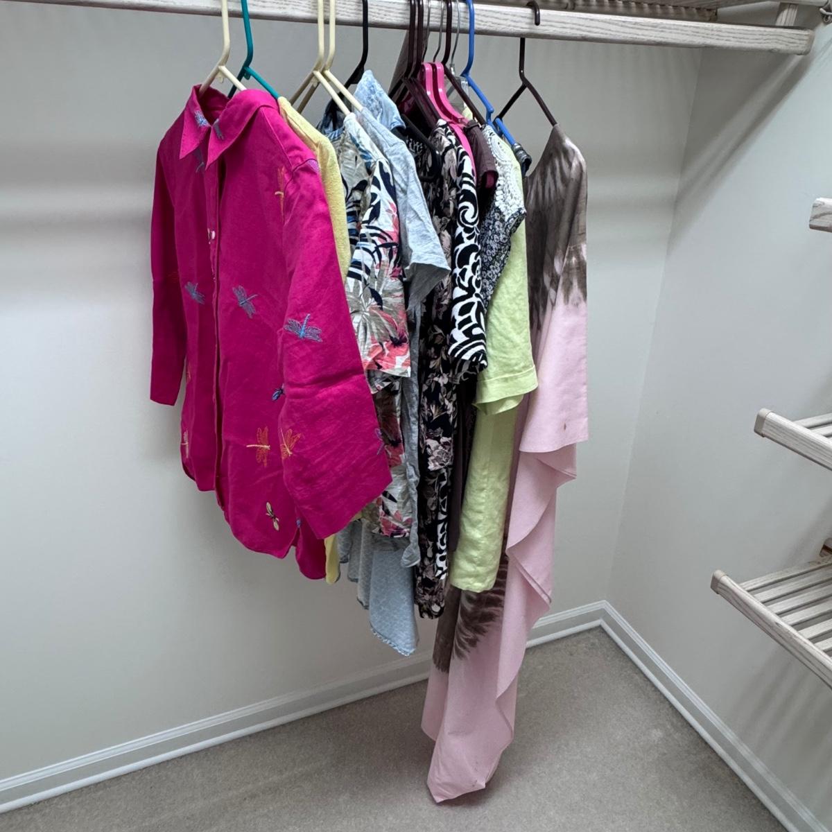 This lot of warm weather clothing includes one beautiful caftan with a pink and grey tie-dye pattern. It also includes two Kim Rogers blouses, one yellow Sonoma shirt, one Chicos shirt, one Ann Taylor shirt, and one Blue Island tank top. You’ll also find one J. Jill tunic, one Talbots shirt, one tank from Hibiscus Collection Hawaii, one Liz Claiborne blouse, and one shiny tank top by I.N. Studio. The caftan does not have tags, but it appears to be one size fits all. It has a few stains on it - see pictures. Also, see pictures for sizes. Shipping available.