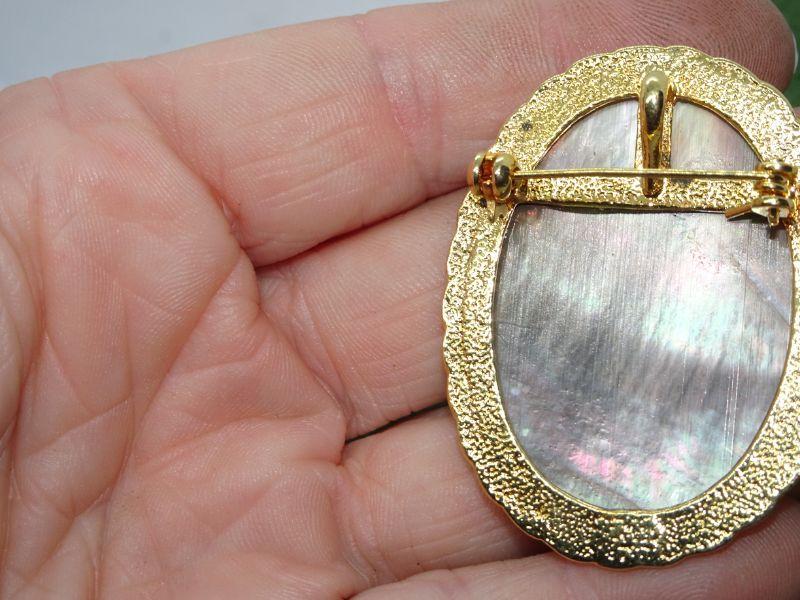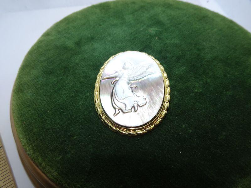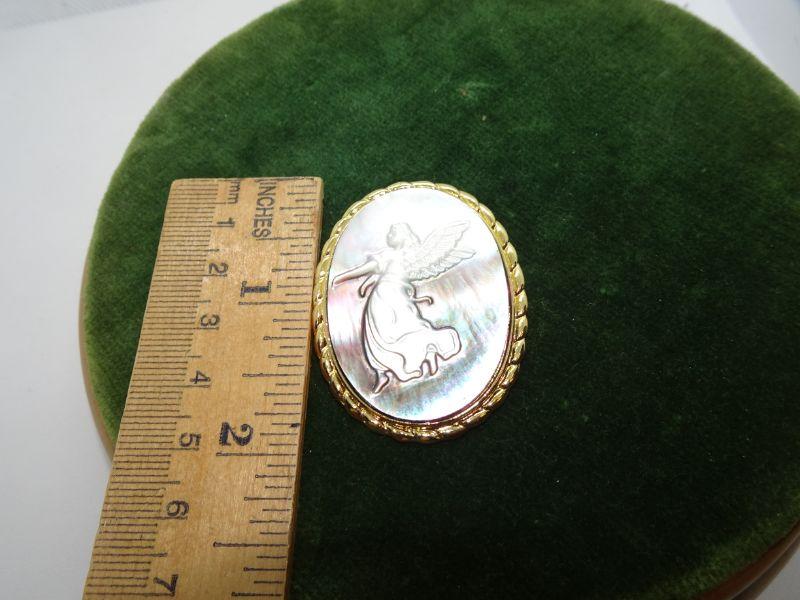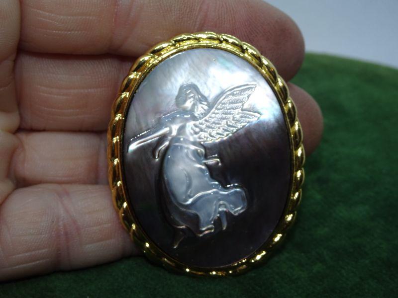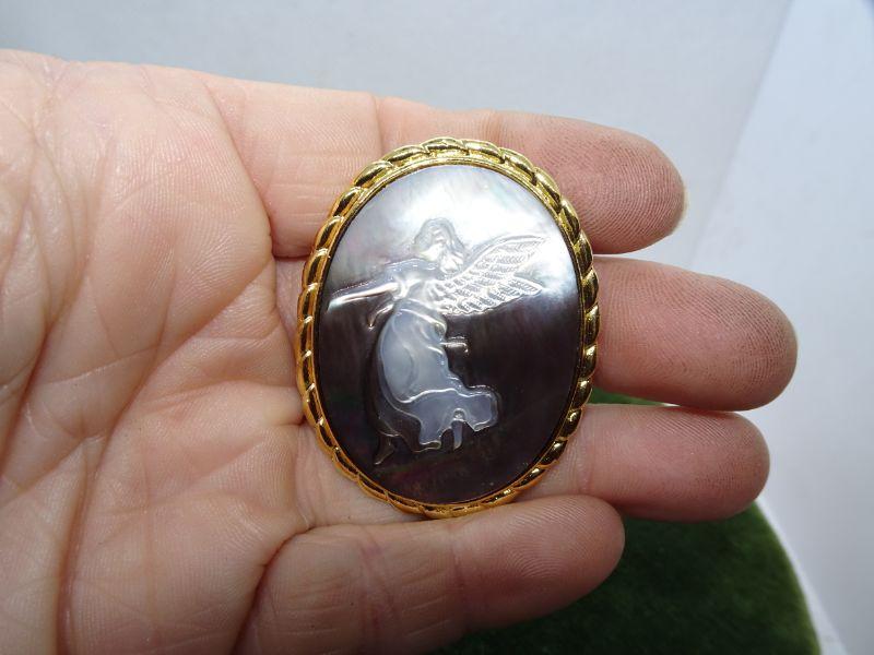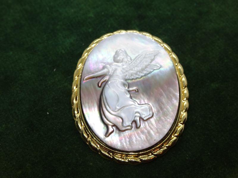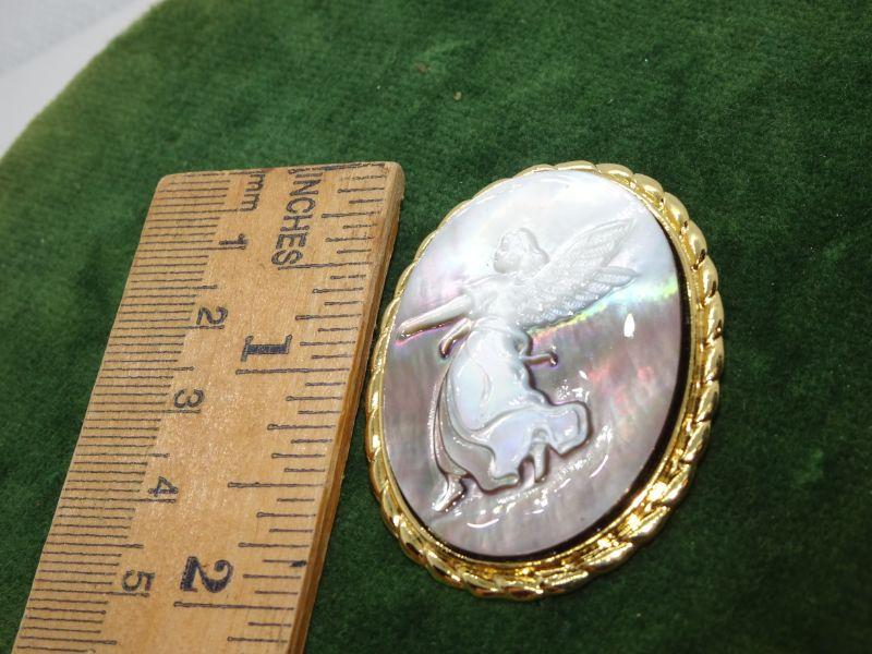 Beautiful Cameo Style Mother of Pearl Angel Brooch Pendant Flying Angel